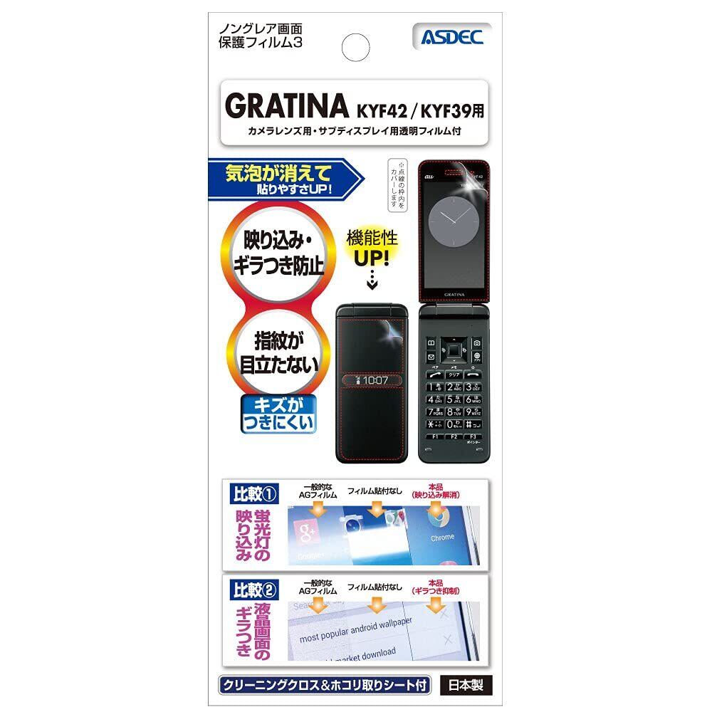 ASDEC au GRATINA KYF42 / GRATINA KYF39 フィルム 兼用 ノングレアフィルム [ メイン サブ 背面カメラ 3点セット ] 日本製 防指紋 気泡消失 映込防止 アンチグレア NGB-KYF42/GRATINAKYF42フィルム