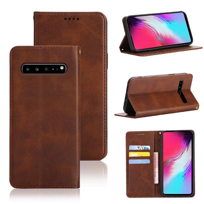Galaxy S10 ケース 手帳型 対応 SC-03L/SCV41 ケース 手帳型 カバー PUレザー カード収納 財布型 耐衝撃 ケース マグネット スタンド機能付き 5色 (ギャラクシーS10 ケース 手帳型) (ダークブラウン)