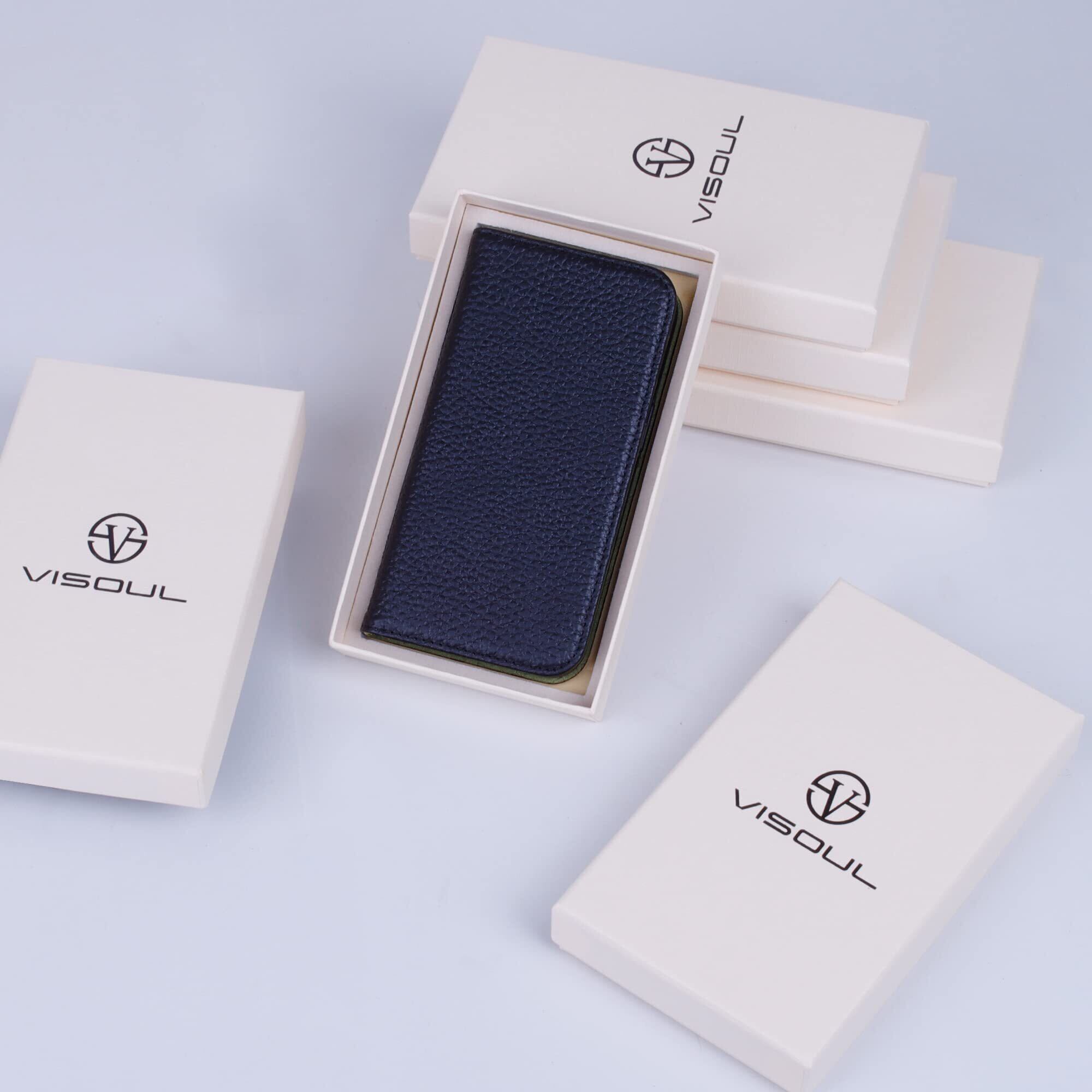 VISOUL iPhone 12 Pro ケース 手帳型 本革 レザー スマホケース アイフォン12 Pro 全面保護 マグネット式 カード収納 横置きスタンド機能付き手帳型ケース アイホン 12Pro/12対応 6.1インチ シュリンクレザー iphone 12 ネイビー