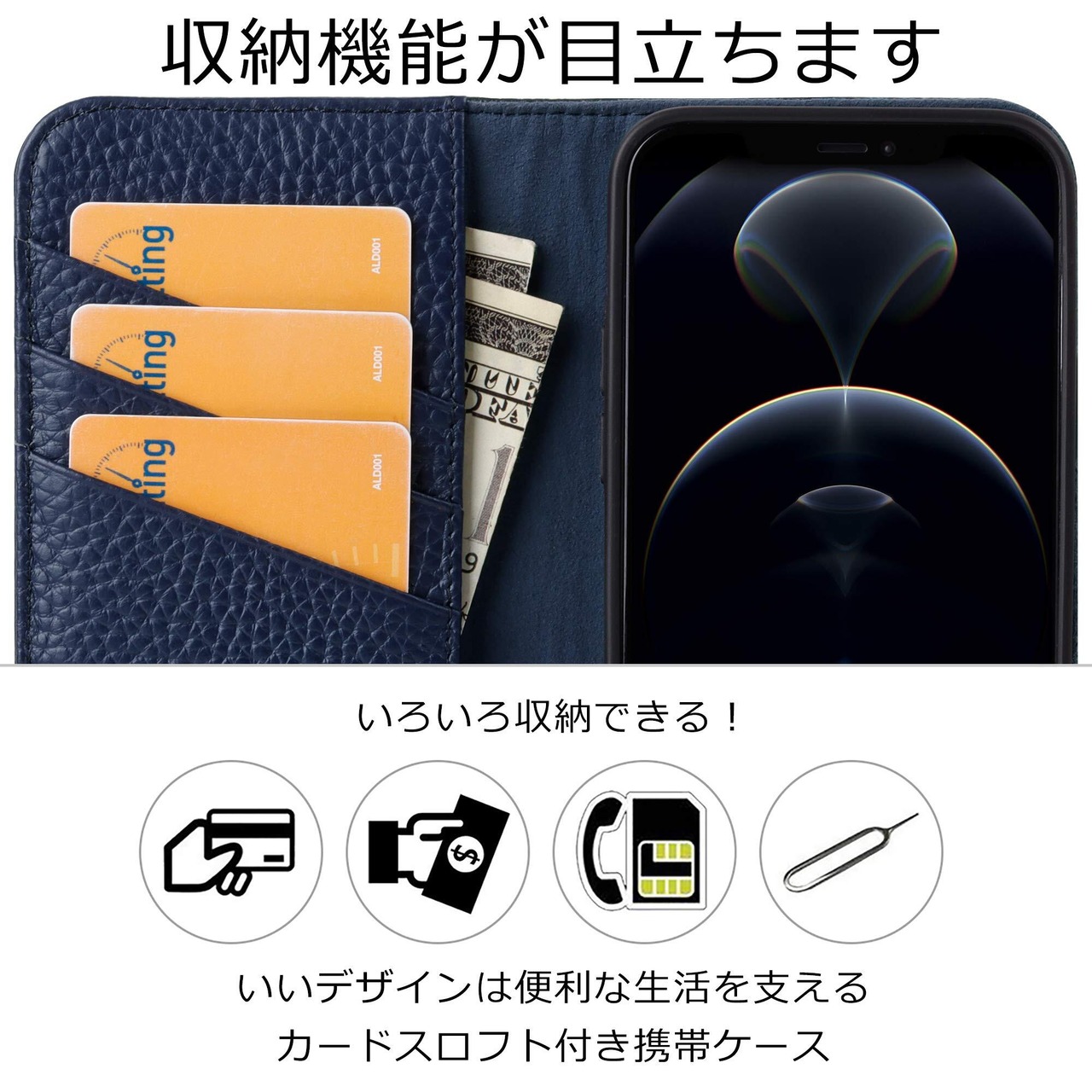 【新春セール】VISOUL iPhone 12 Pro ケース 手帳型 本革 レザー スマホケース アイフォン12 Pro 全面保護 マグネット式 カード収納 横置きスタンド機能付き手帳型ケース アイホン 12Pro/12対応 6.1インチ シュリンクレザー iphone 12 ネイビー | impsmile