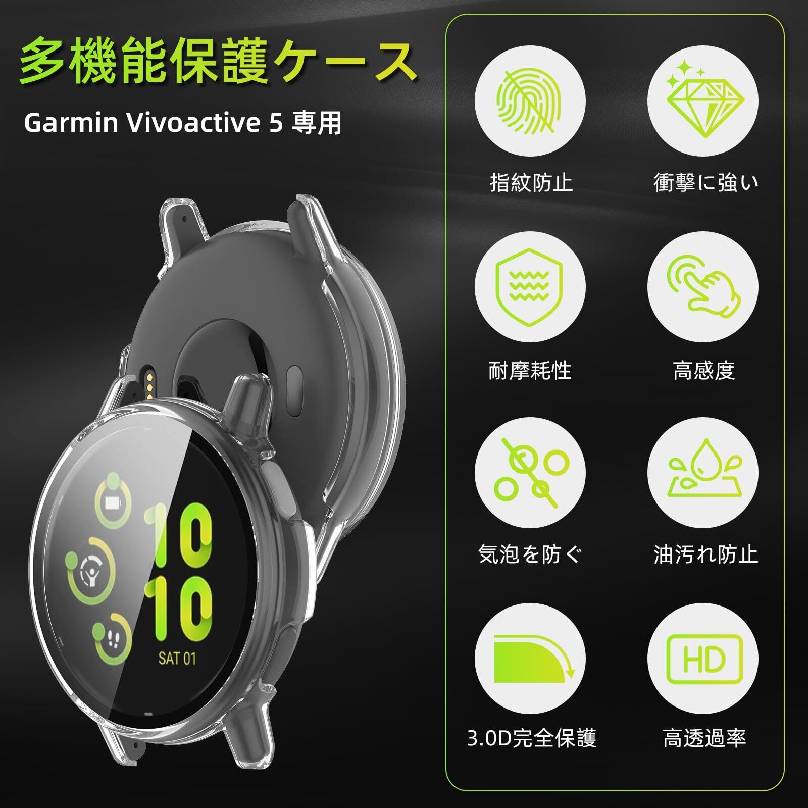 AiMaoo Garmin Vivoactive 5 対応 ケース 強化ガラスフィルム 保護 カバー 硬質ポリPC素材 一体化 耐衝撃 傷防止 変色防止 全面カバー 全面保護 スマートウォッチ Garmin Vivoactive 5 用 (クリア)