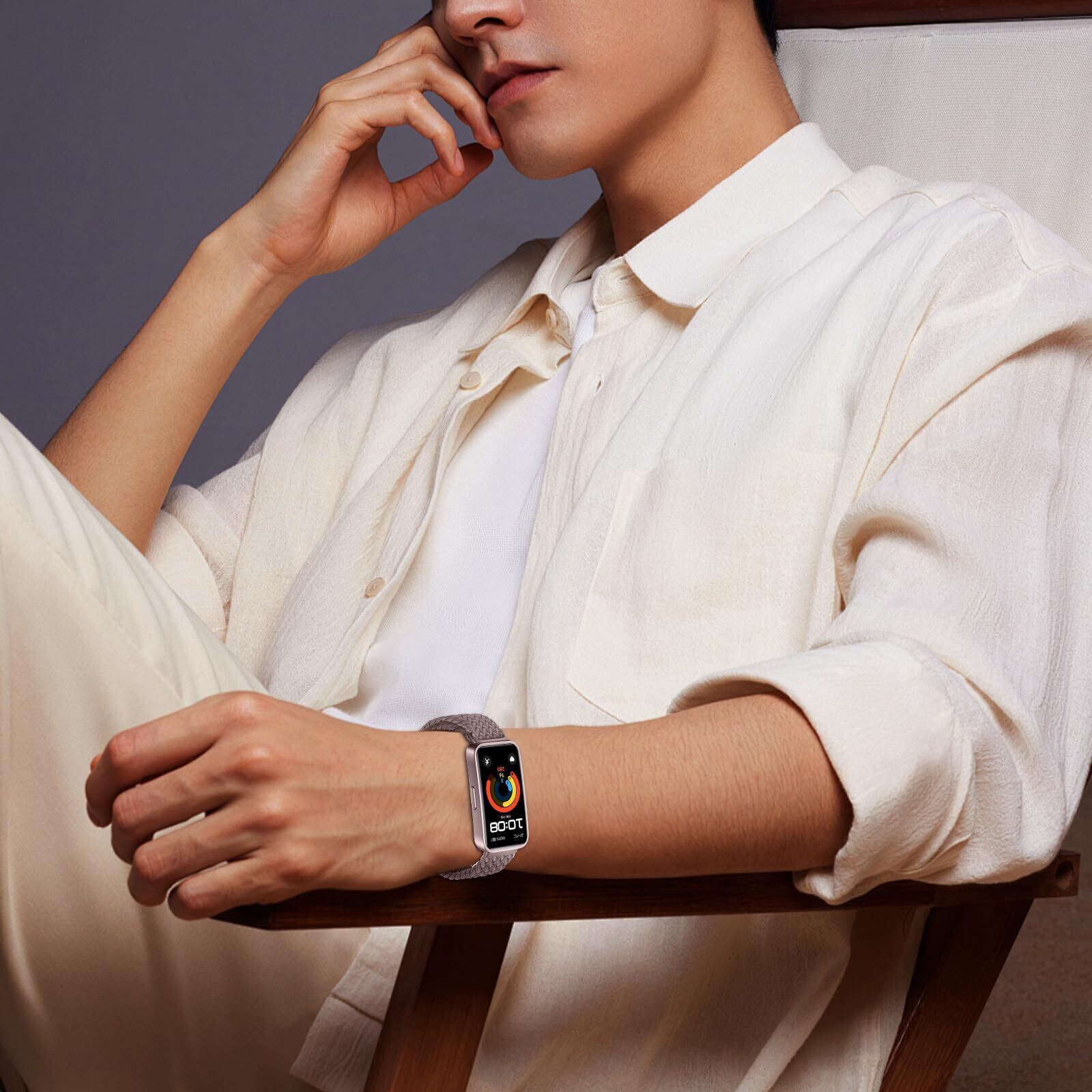 【肌に優しい柔らかい素材】コンパチブル Huawei Band 10 / Band 9 バンドは、伸縮性に優れた高品質ナイロン素材を使用しており、軽量で柔らかな感触が特徴です。滑らかな編み目が肌に優しく、通気性も抜群で、長時間の使用でも快適さを保ちます。汗をかいても蒸れにくいので、常に快適な装着感を維持できます。