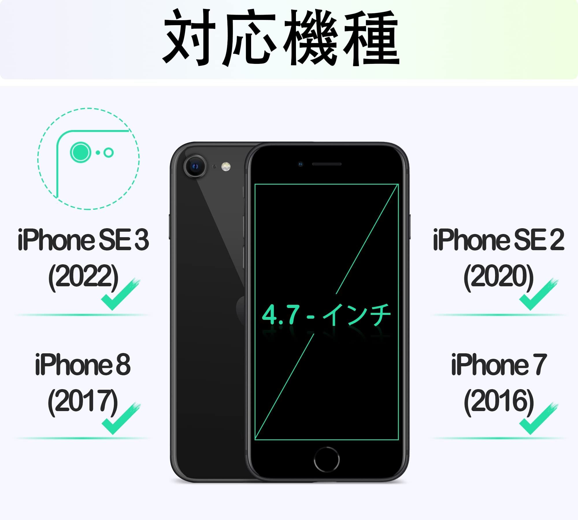 【適用型番】 iPhone SE3(2022年モデル) iPhone SE2(2020年モデル)、iPhone 8(2017年モデル)、iPhone 7(2016年モデル)対応しております、ご注意:iPhone SE第一世代(2016年モデル)/iPhone 8 Plus/7 Plus対応しておりません、機種と画面サイズをご確認の上、ご購入ください。
