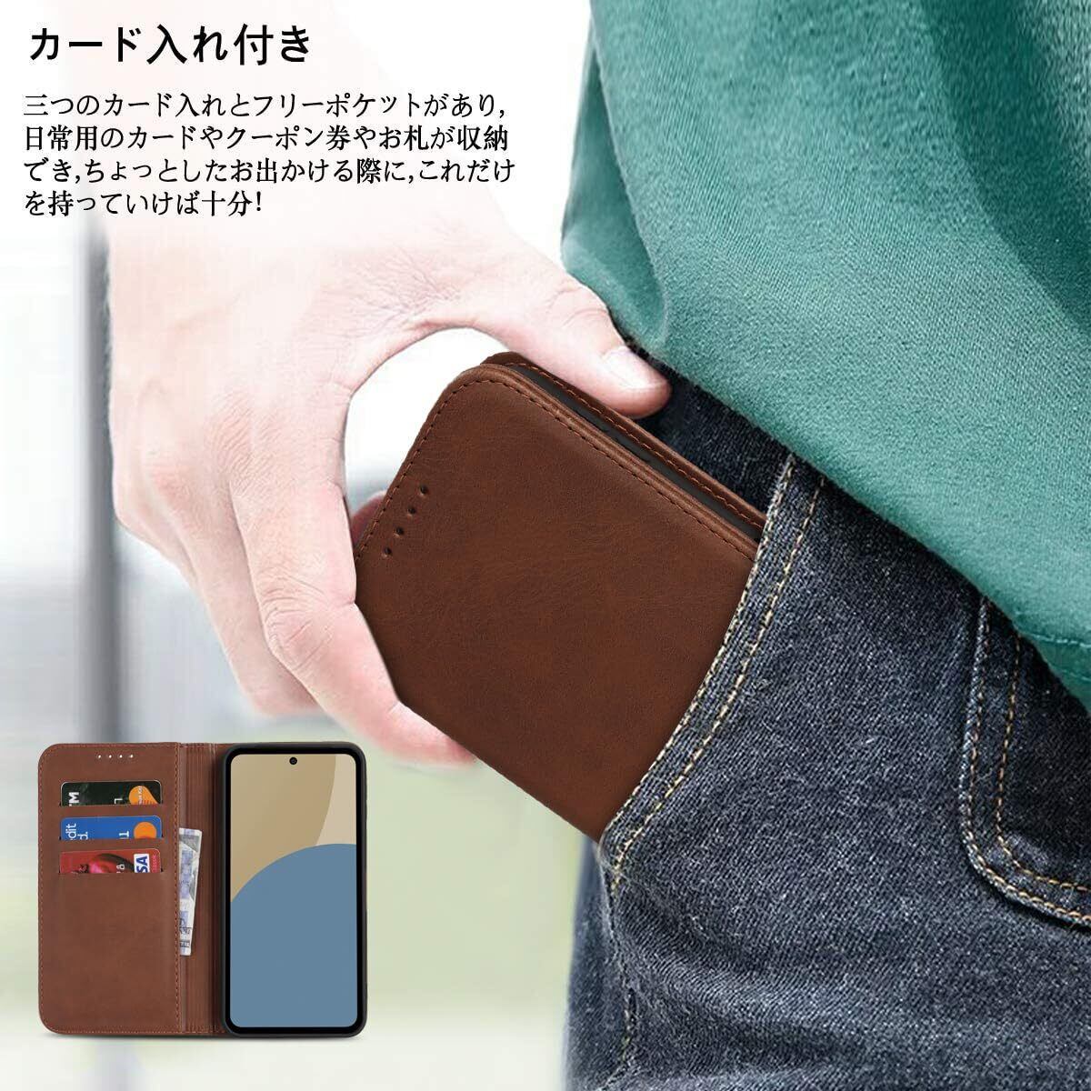 【機能性①】:レトロの表面(高品質のPUレザー)+優しい裏面(柔軟なTPUカバー)と組み合わせ、衝撃吸収機能が良いのです、しっかりの二重保護でスマホ本体を守り抜きます。