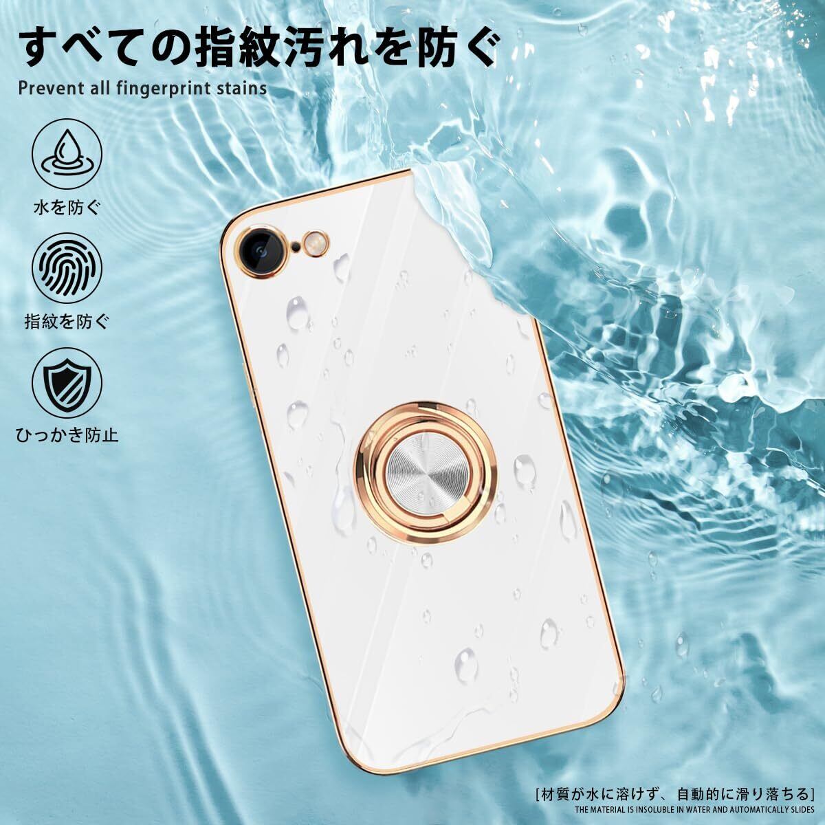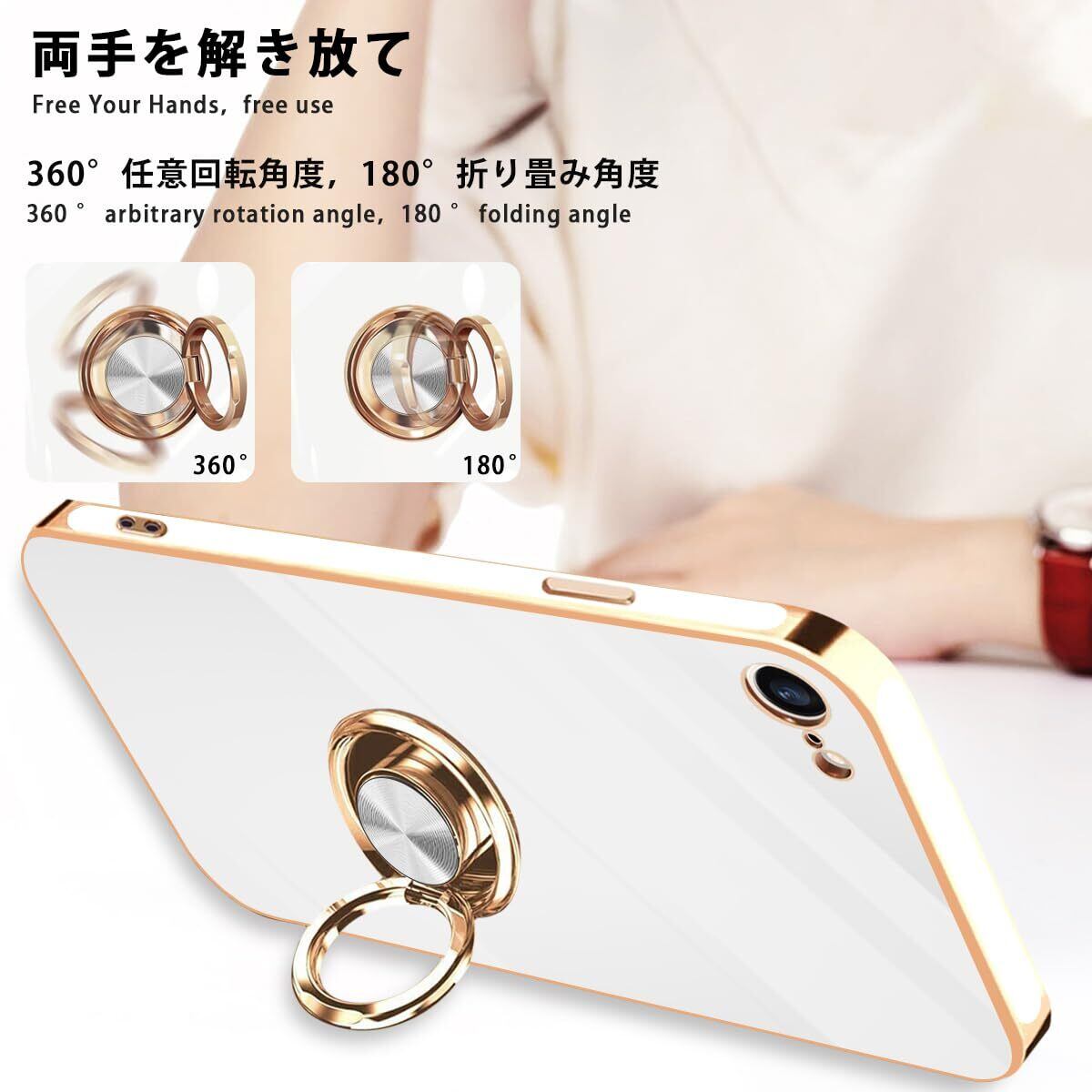 iPhone SE ケース iPhone第3世代 ケース iPhone第2世代 ケース iPhone8/7 ケース リング 耐衝撃 360°回転 スタンド機能 車載ホルダー対応 アイフォン SE3/SE2 ケース 一体型 携帯ケース 保護カバー レンズ保護 ストラップホール付き 4.7インチ (ホワイト)