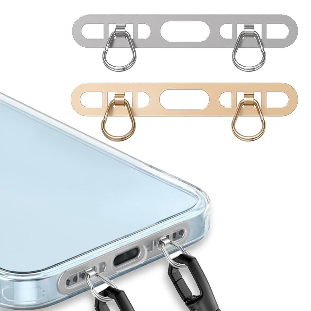 [ALUBES] お得な2個 極薄0.4mm スマホ ストラップホルダー 金属製 2口タイプホルダー ステンレス製 金属製スマホストラップ用パッチ 簡単取り付け 充電干渉なし 落下紛失防止