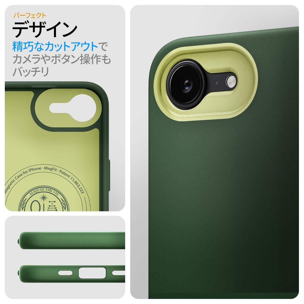 Spigen 【創業18年の技術力】 iPhone 16e ケース MagSafeアクセサリー対応 マグネット搭載 ストラップホール 米軍MIL規格 ナノポップ・マグフィット ACS09157 (アボ・グリーン)