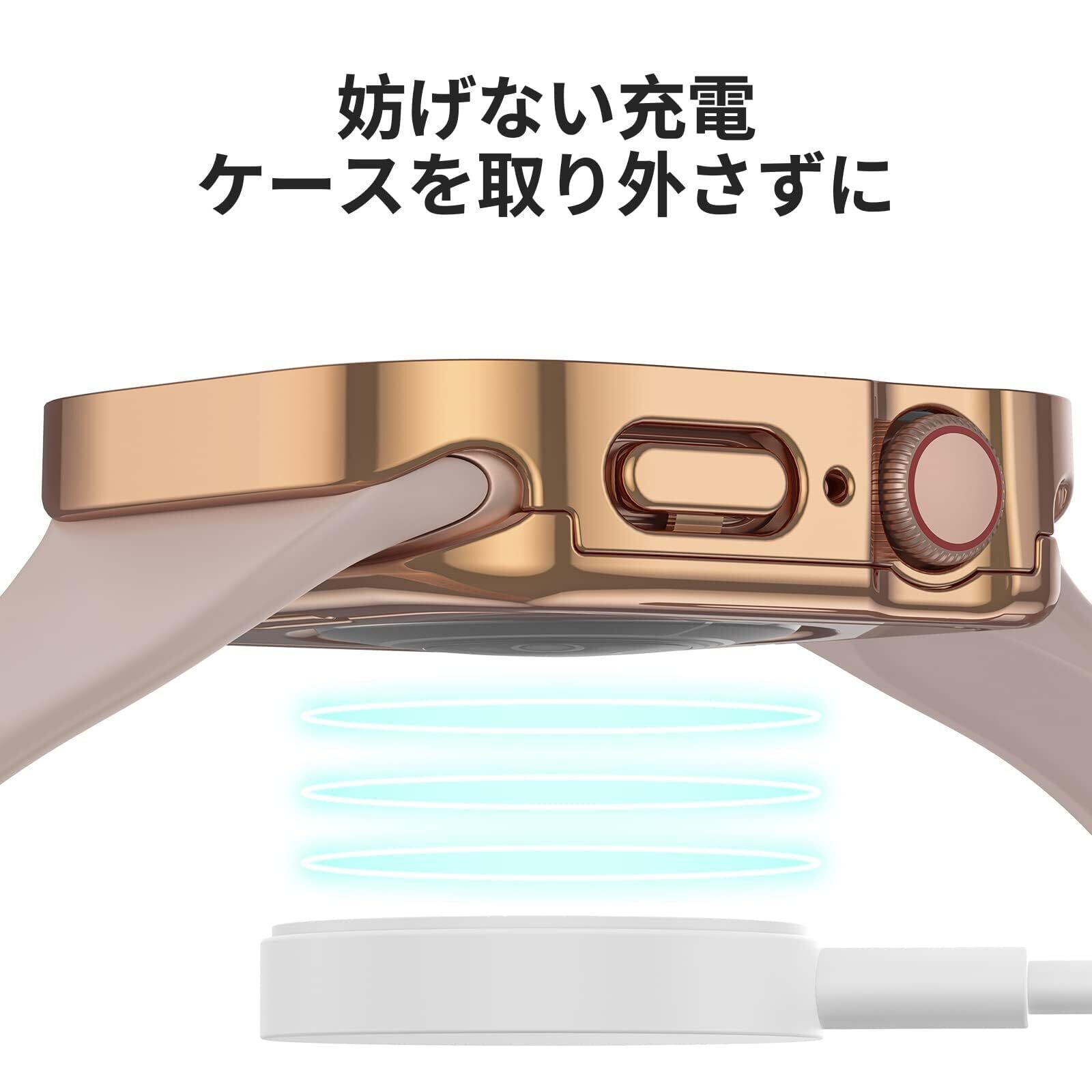 【フルカバー保護】Kawoco アップルウォッチ 防水 カバー Apple Watch SE Series 6 5 4 対応 44mm ケース 2 in 1 前後の保護 二重構造 耐衝撃 iWatch 一体型 ケース 44mm ローズゴールド