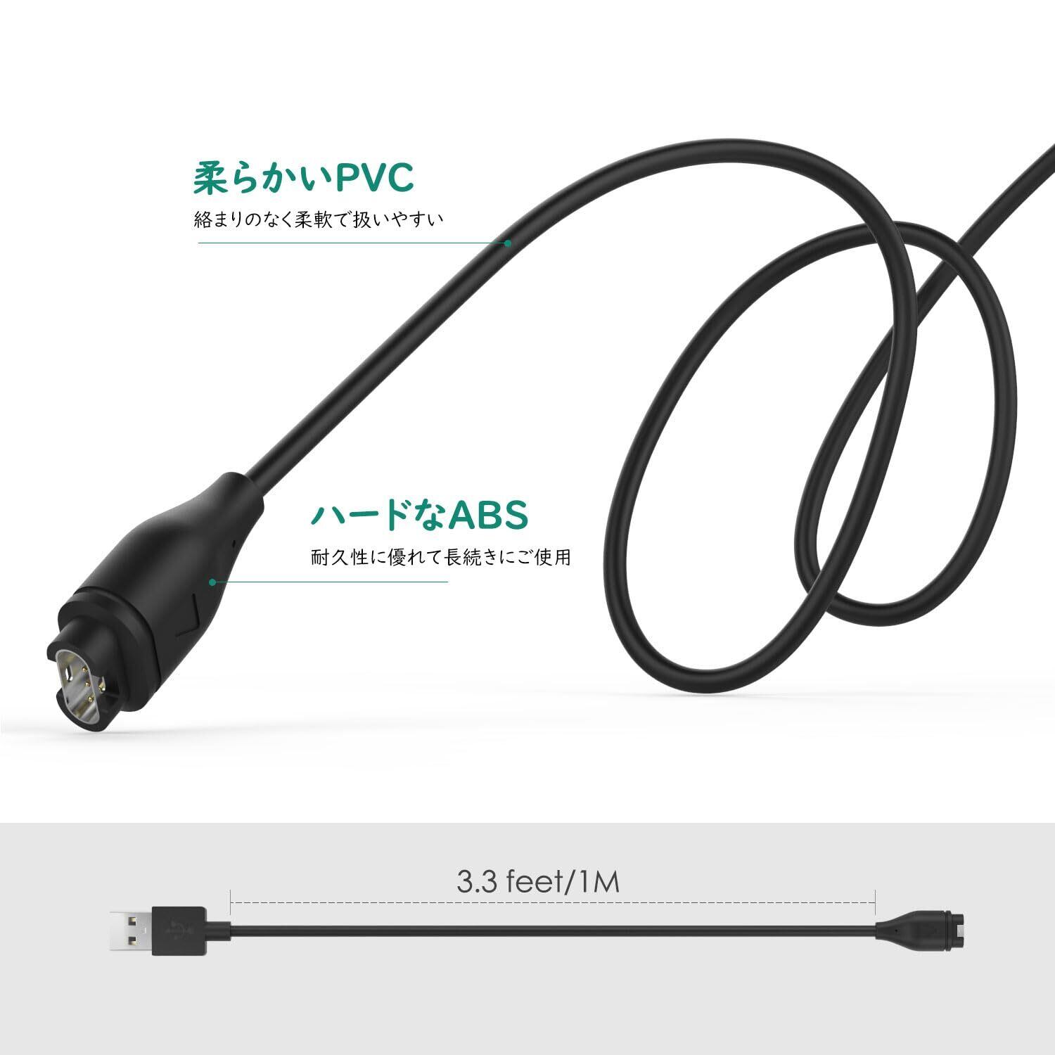 【新春セール】【2本セット】 MoKo ガーミン用充電ケーブル USB チャージケーブル 1m 充電器 データ転送 急速充電 Vivoactive6/5/4/3、Fenix8/7/7S/7X/6/5、Forerunner265/265S/165/965/245/ForeAthlete55、InstinctE/3/2/2X、ApproachS60など対応 Black+Black | impsmile