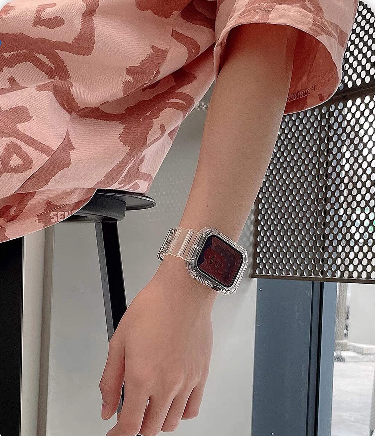 コンパチブル apple watch バンド アップルウォッチバンド スポーツバンド 一体型交換用ベルト 透明 クリア 耐衝撃ベルト iWatch Series 49mm 46mm 45mm 44mm 42mm 41mm 40mm 38mm 10/9/Ultra2/Ultra/8/7/6/5/4/3/2/1/SEに対応 TPU材質 全面保護ケース (38mm/40mm/41mm)