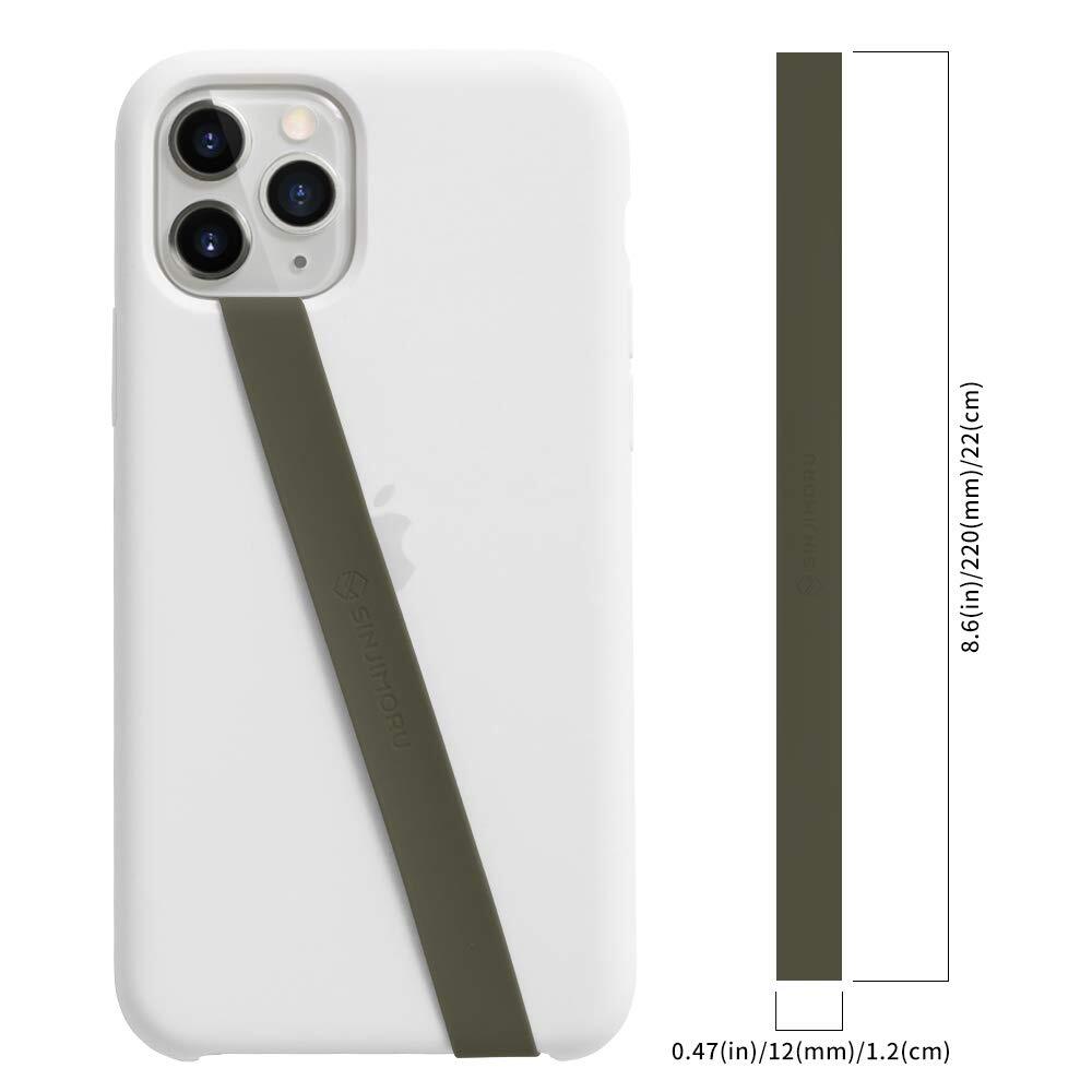Sinjimoru 伸びるスマホストラップ、 iPhone16 Plus Pro Pro Max iPhone15 14 13 12 シリーズ スマホケース対応シリコンフィンガーホルダー、薄型ワイヤレス充電対応スマホホルダー、片手操作、落下防止スマホベルトグリップ。Sinji Loop オリーブグレイ