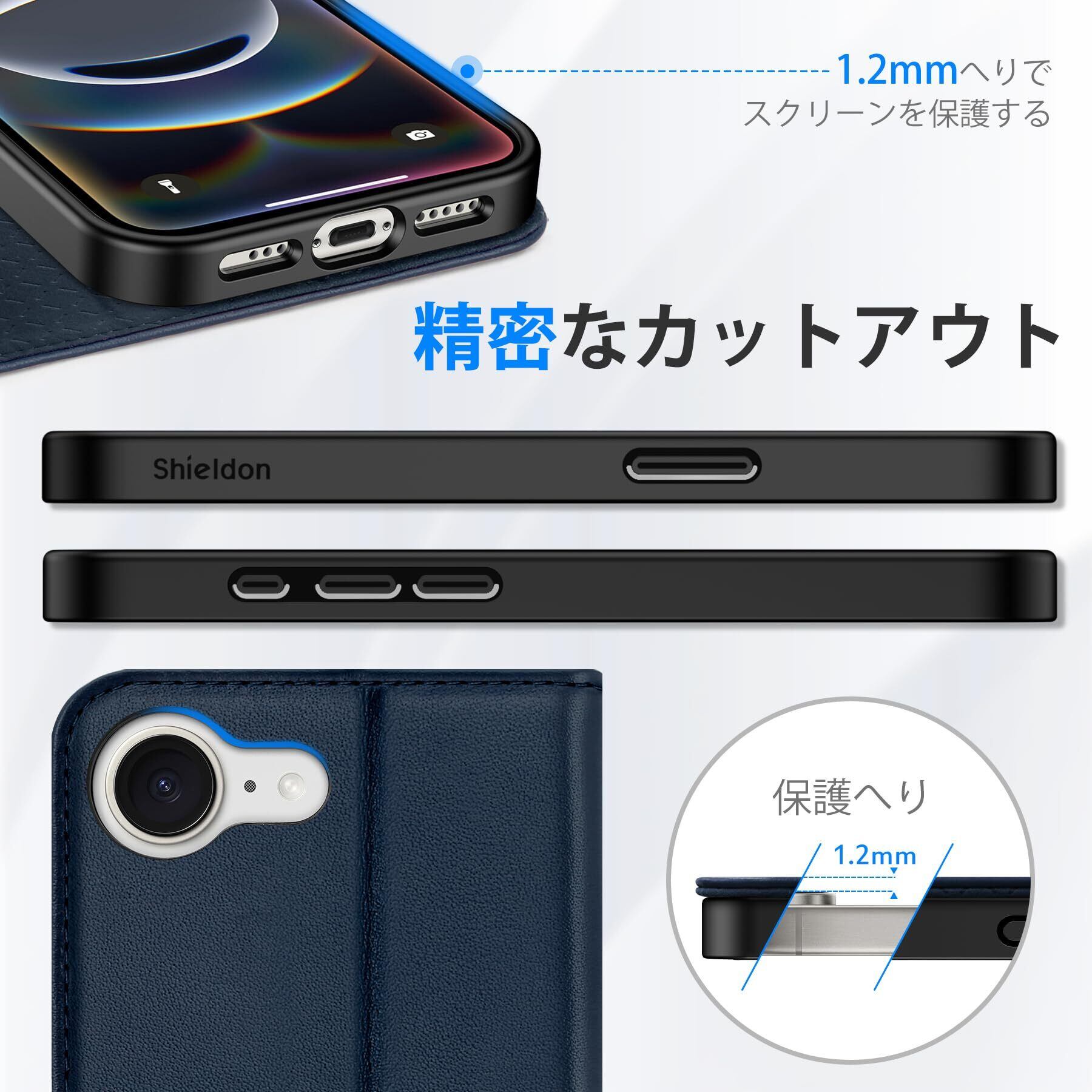 【特価セール】SHIELDON iPhone16e 対応ケース 本革 手帳型 アイホン16e用 スマホカバー 衝撃吸収 TPU素材 カード収納 横置きスタンド機能 マグネット内蔵 [RFIDブロッキング] 全面保護 あいふぉん16e 対応スマホケース 2025年発売 6.1インチ 5G ネイビーブルー | impsmile