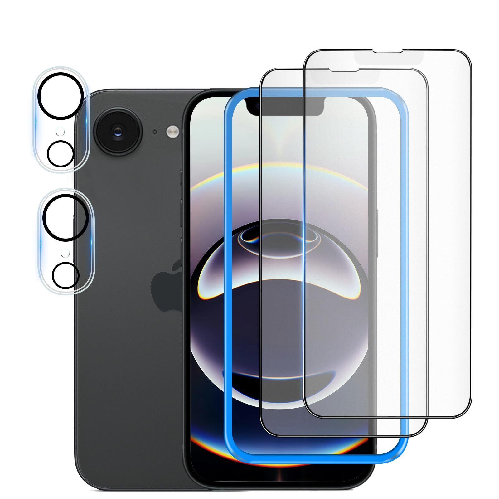 【アンチグレア】 iPhone16e 用 ガラスフィルム アンチグレア 【2枚】+カメラフィルム【2枚】 【ガイド枠付き】 液晶保護 フィルム ゲーム用 タッチ感 強化ガラス サラサラ アイフォン16e 用 (6.1インチ) 全面保護 さらさら 【反射防止/指紋防止/気泡ゼロ/貼り付け簡単】