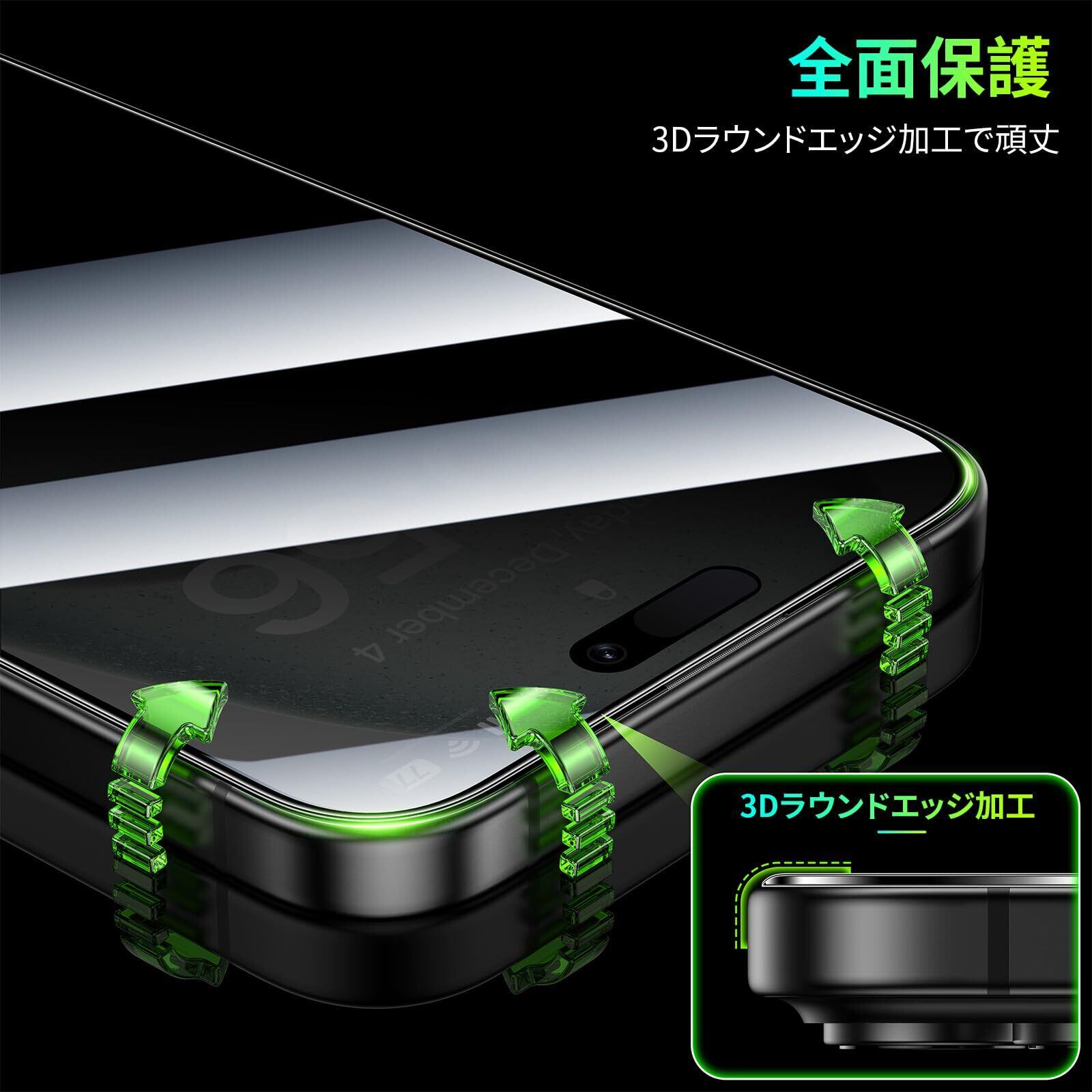 Esanik 360度 覗き見防止フィルム iPhone 16/iPhone 15対応 ガラスフィルム 360°全方向 覗き見防止 保護フィルム ガイド枠付き 強化ガラス 硬度9H 指紋防止 飛散防止 上下左右 360°覗き見防止