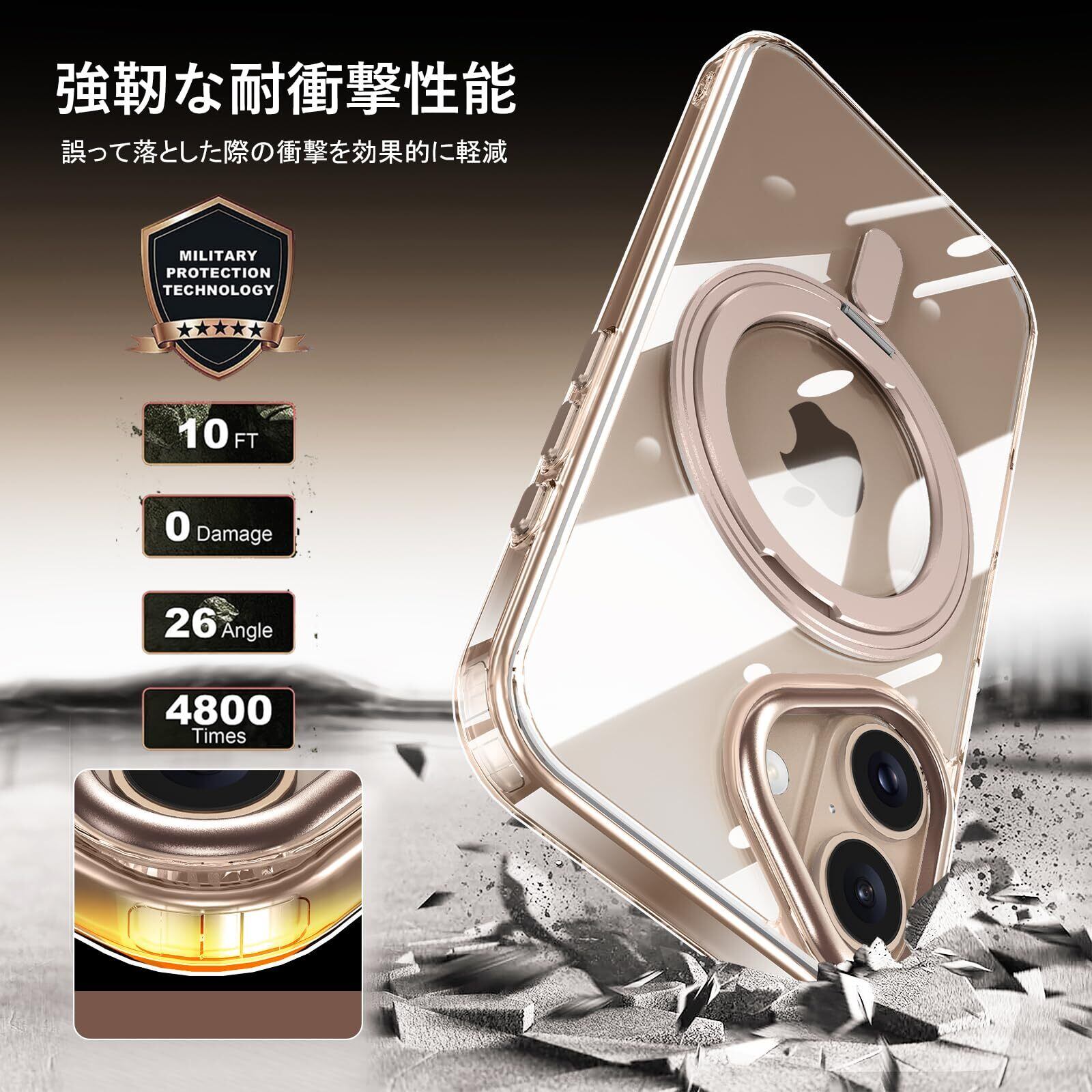 iPhone 16 Plus 適用 ケース Magsafe対応 アイフォン16プラス カバー 360°回転スタンド Uovon スマホケース アイホン 16plus 携帯ケース ワイヤレス充電 車載ホルダー 対応 ストラップ穴付き 透明 指紋防止 黄变防止 ・ クリア デザート