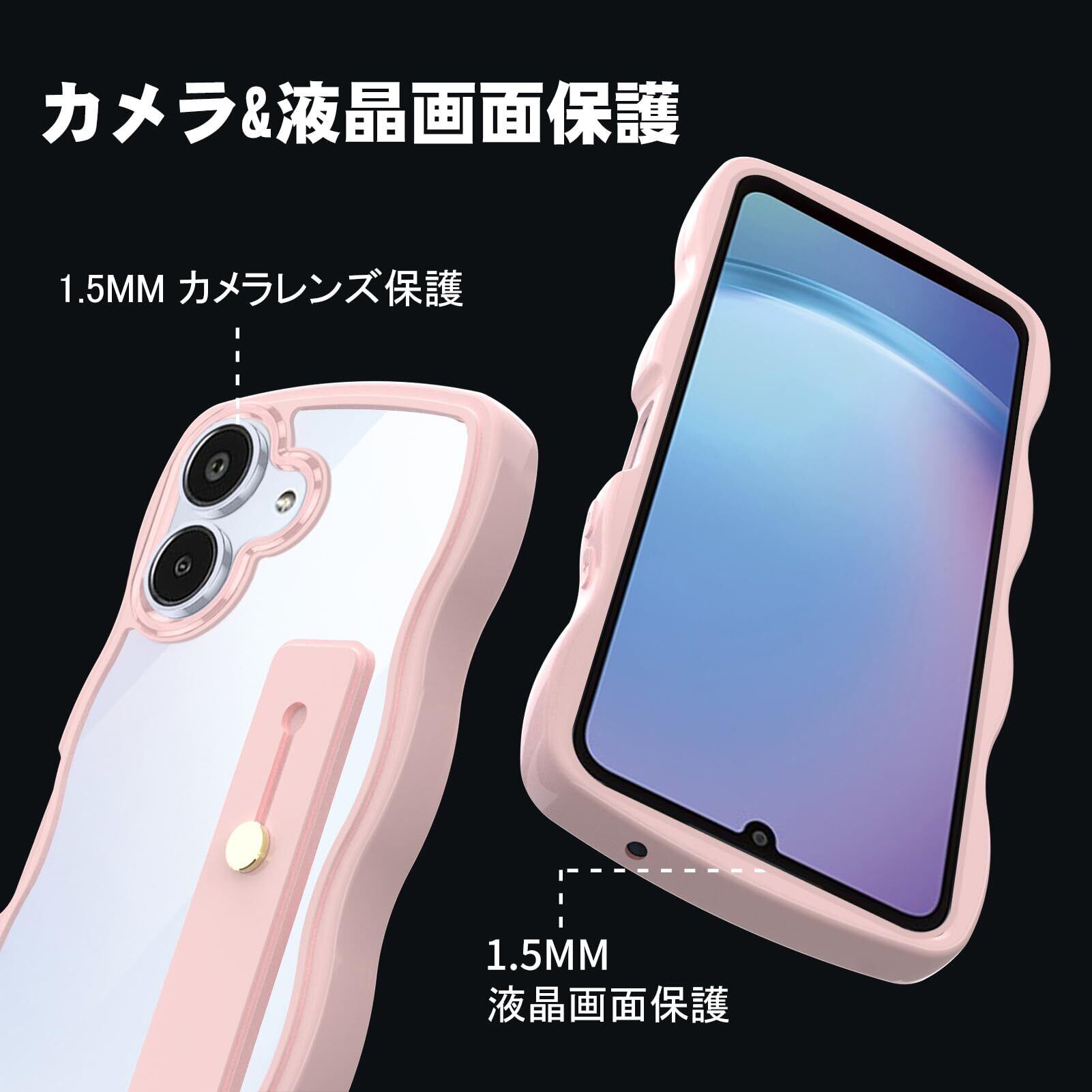 クリア Galaxy A25 5G SC-53F ケース スタンド機能 ギャラクシー A25 5G カバー マホケース 耐衝撃 透明 軽量 薄型 おしゃれ 人気 ストラップホール (ピンク)