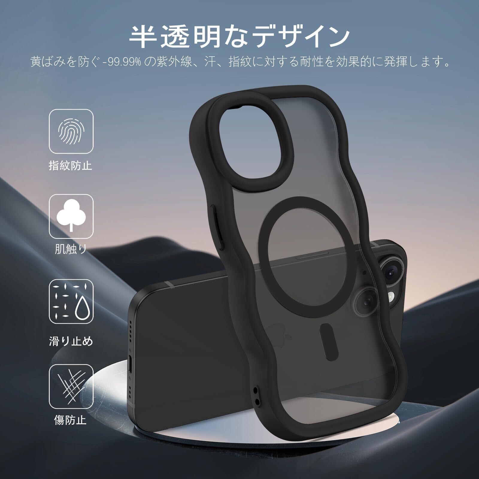 Telaso iphone13 ケース iphone 14 用ケース iphone13ケース iphone 14ケース 手首ストラップ付き ウェーブ 波状エッジ 耐衝撃 Magsafe対応 落下防止 擦り傷防止 おしゃれ いphone14ケース 半透明 薄型 軽量 指紋防止 アイフォン13/14 カバー ワイヤレス充電対応 6.1インチ ブラック