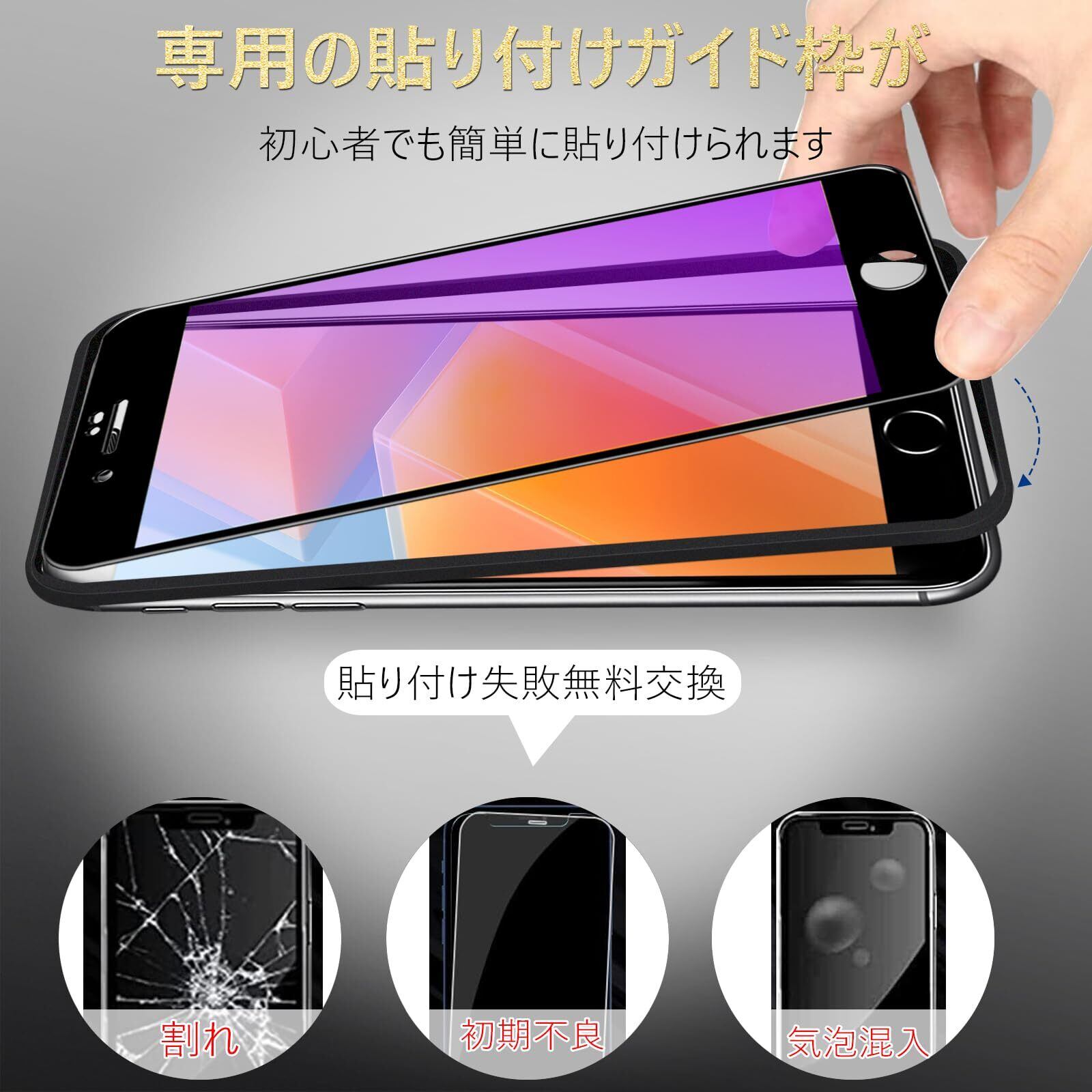 iPhone SE ガラスフィルム ブルーライト いPhone SE2 / SE3 保護フィルム ブルーライトカット アイフォンSE第2/3世代 フィルム 全面保護 iphone せ2 / せ3 用 ガラス保護フィルム 画面シート 【硬度9H/指紋防止/貼り付け簡単】 ガイド枠 付き