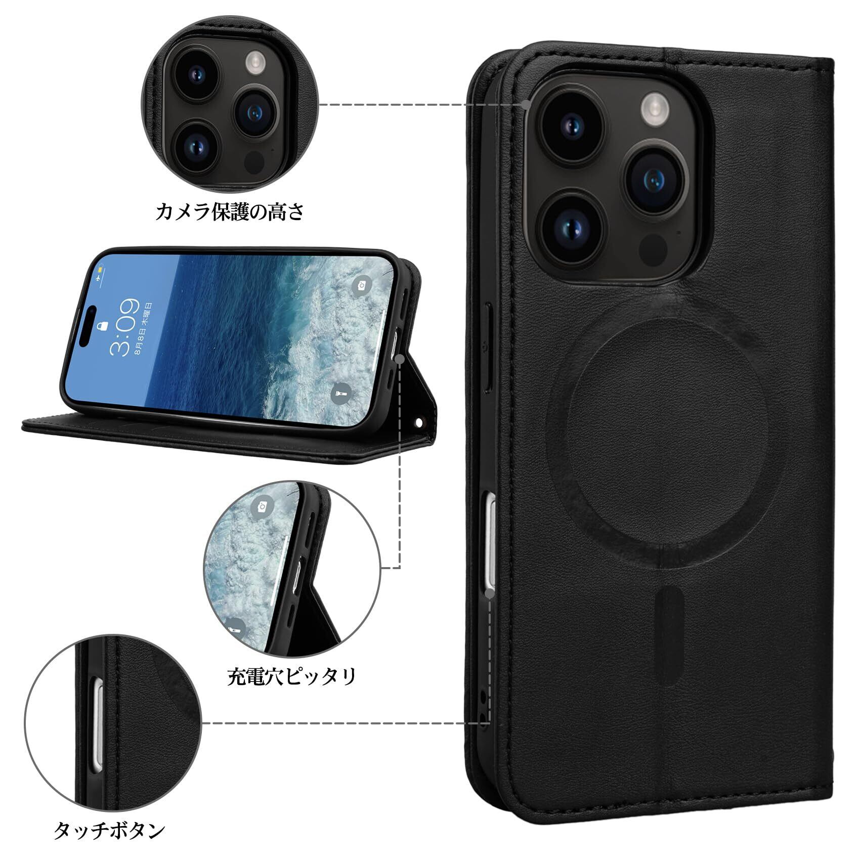 Rssviss iPhone 16 Pro 用 ケース 手帳型 MagSafe対応 iPhone16 pro 用 カバー 手帳型 マグセーフ対応 カード収納 iPhone 16 pro 専用 手帳型 ケース ワイヤレス充電対応 スタンド機能 iPhone16 pro 専用 ケース 手帳 マグネット付き iphone 16 pro 用 ケース magsafe対応 6.3inch W1M ブラック