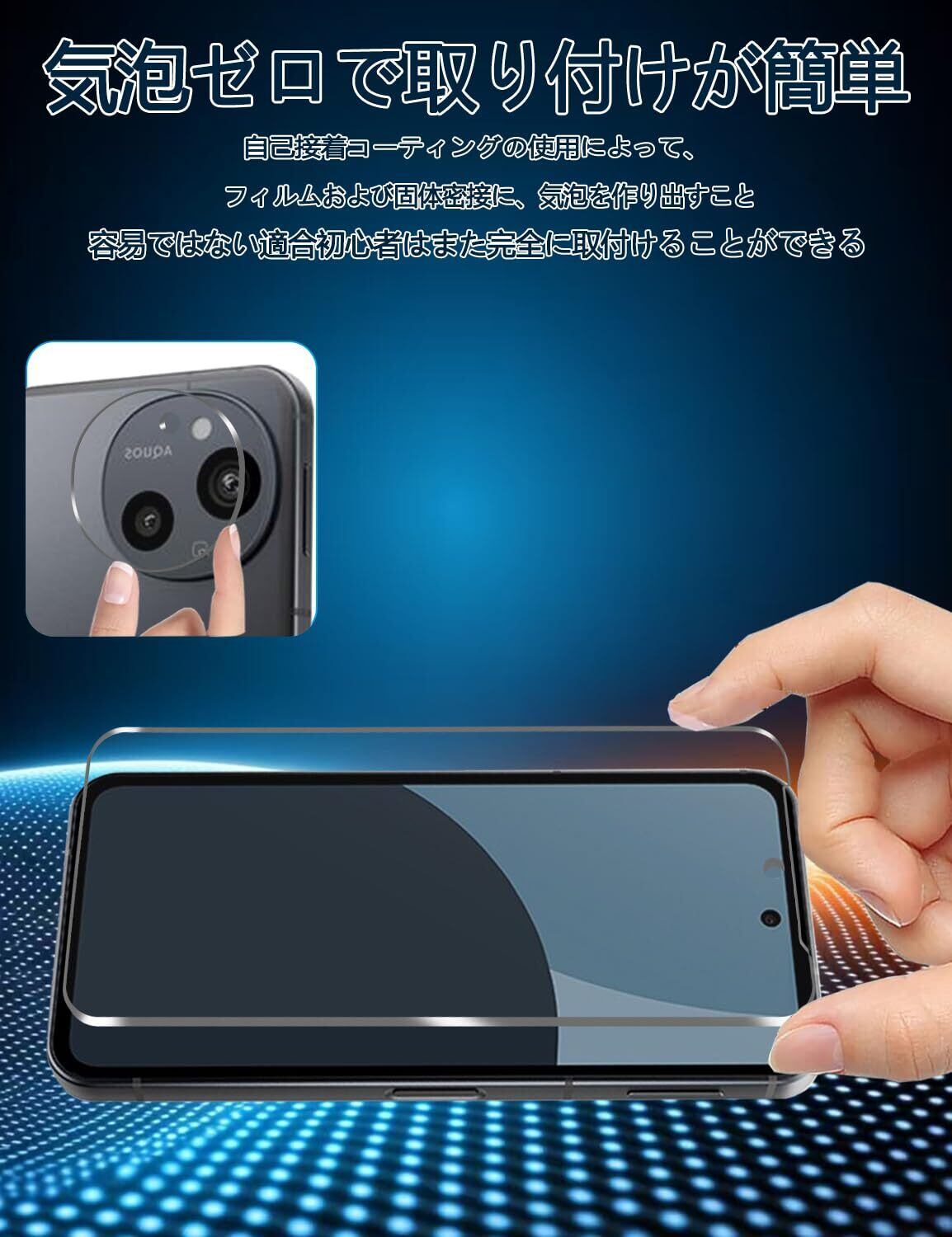 【超お得な2+2枚セット・ご注文前にお読みください・対応機種】aquos sense9 フィルム に適応しています! aquos sense9 フィルム 2個の強化ガラススクリーン保護フィルムと aquos sense9 2個のレンズフィルムの組み合わせで、万能の保護を提供します。