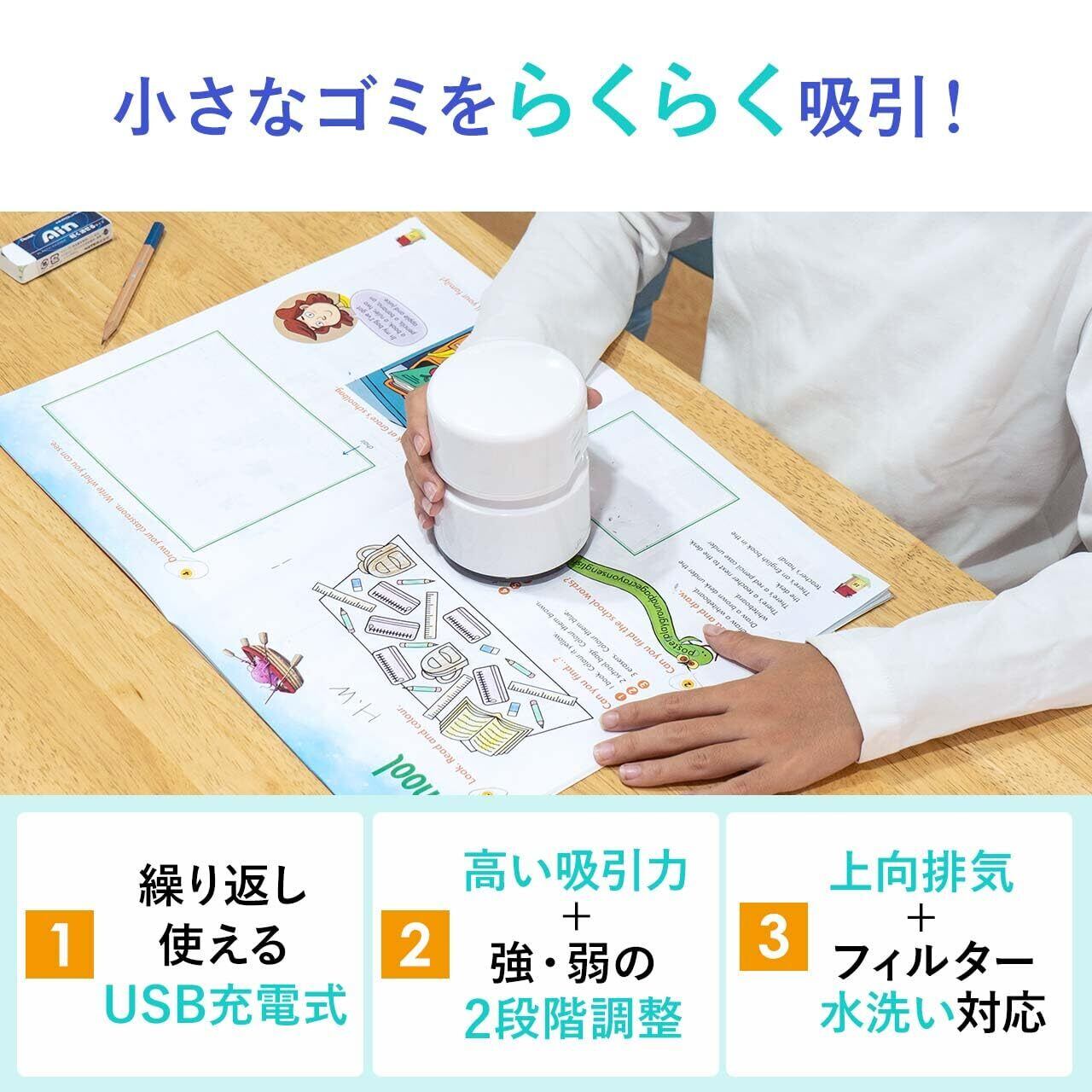 サンワダイレクト 卓上クリーナー 充電式 消しカス 強・弱2段階 隙間ノズル付き 200-CD070