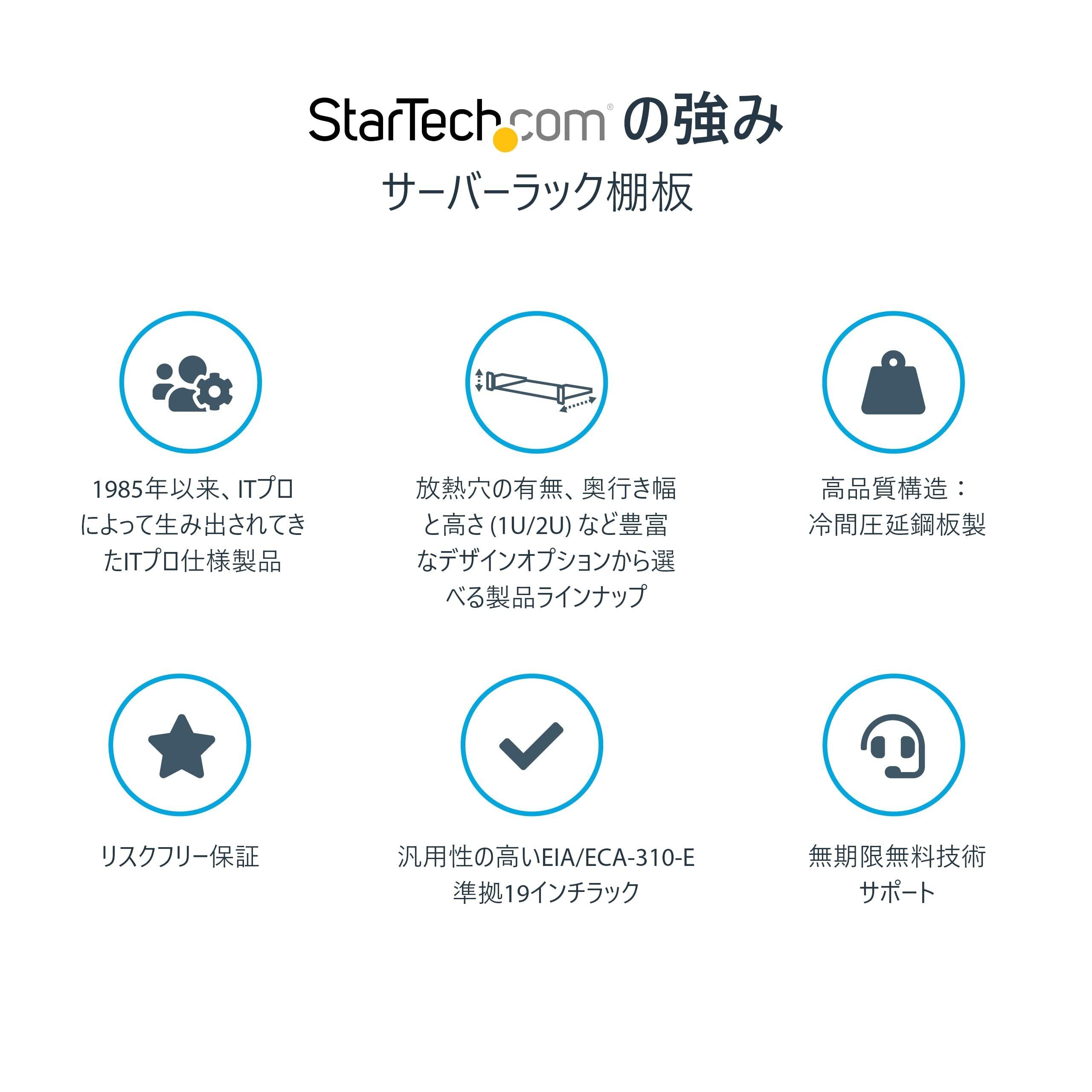 StarTech.com 1U サーバーラック棚板/19インチ装置ラック&キャビネット用放熱スリット付きカンチレバートレイ/高耐久性スチール/耐荷重20kg/奥行25cm ブラック CABSHELFV1U | impsmile