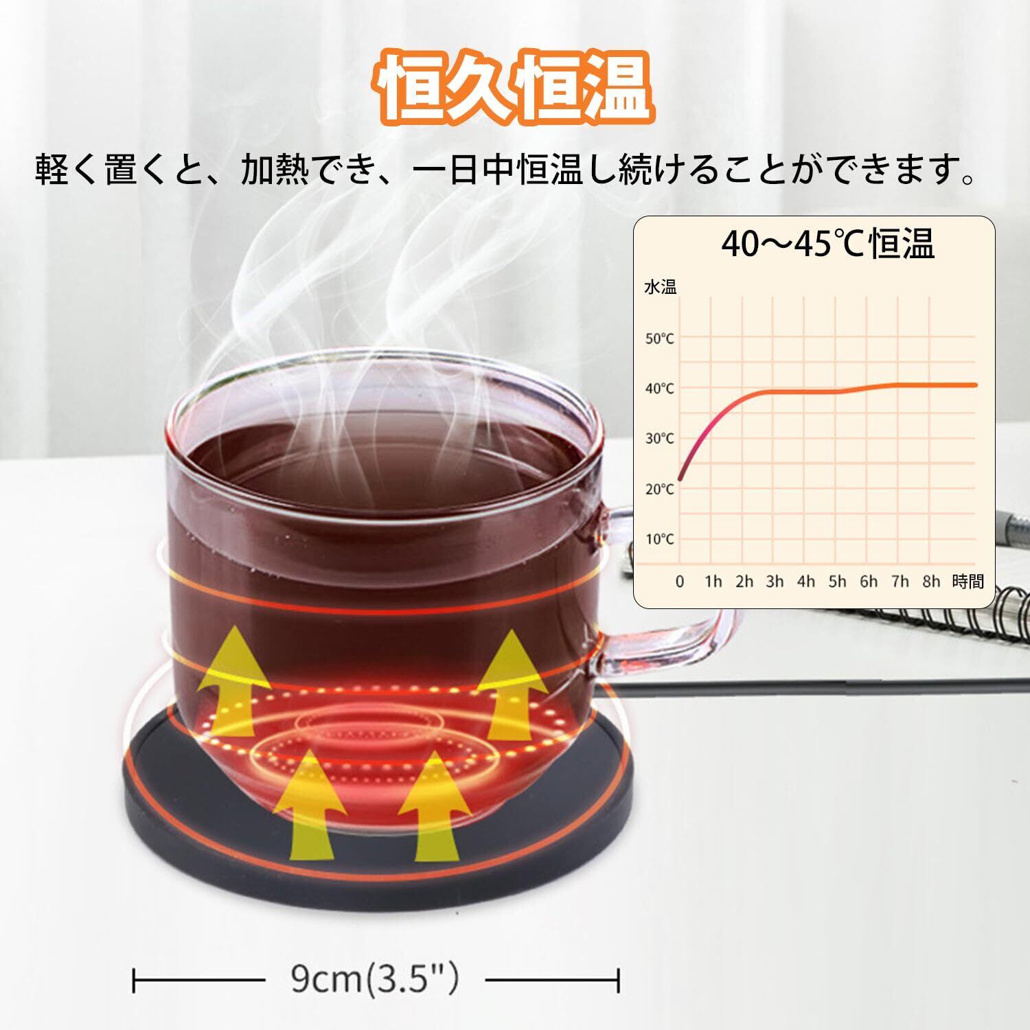 USB保温コースター:飲み物を温かい状態で飲みましょう。45℃のちょうどよい温度を保持します。コーヒー、ミルク、スープ、ココア、紅茶(ホットティー)などお好きなお飲み物でお使いいただけます。朝晩の冷える時間帯でも常に最適温度を保ちます
