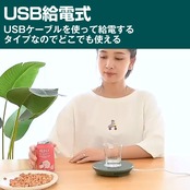 どこでも使いやすいUSB給電式:付属のUSBケーブルを使って給電するタイプのカップウォーマーですので、使用場所を問わず、お使いいただきやすいです。ノートパソコンからも給電できますので、オフィスでお仕事をする際にも使用できます。