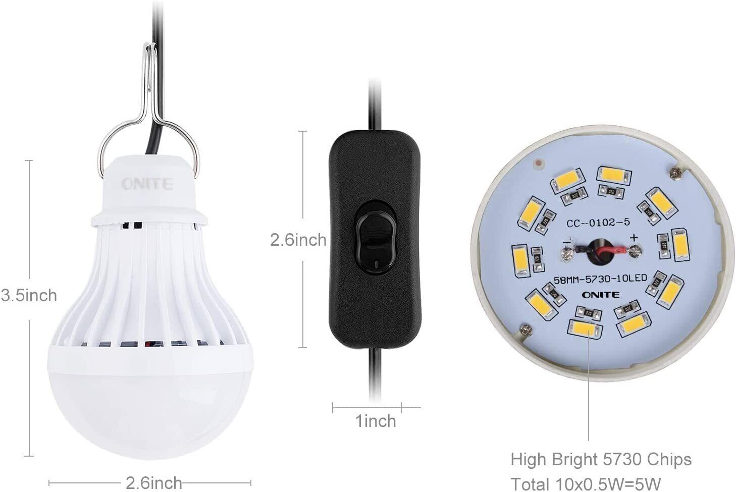 Onite USB LED電球 LED照明 USB LEDライト 電球形 スイッチ付き キャンプライト アウトドア ランタン デスクライト ベッドランプ 車中泊ライト 停電ライト 緊急ライト( 昼光色)