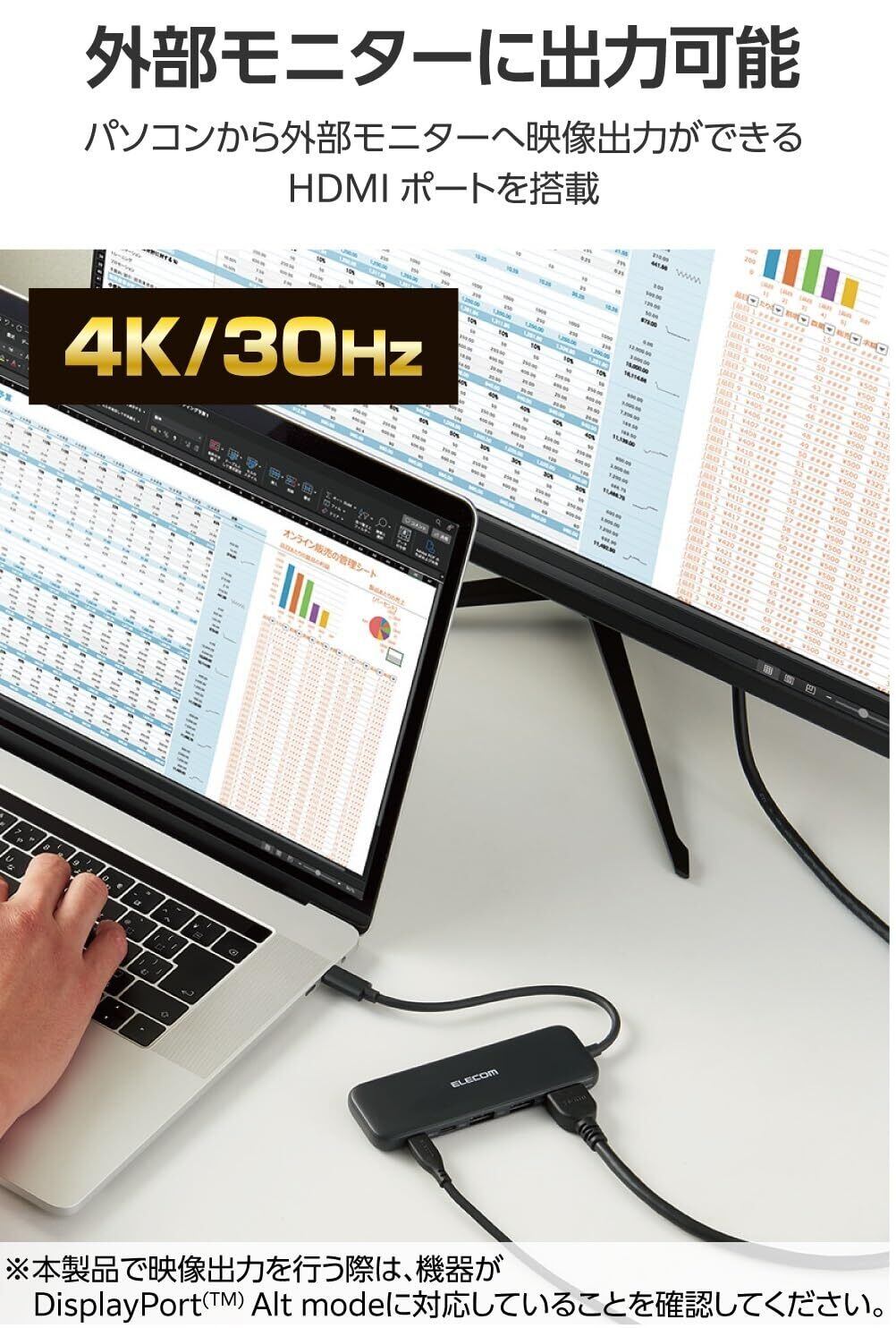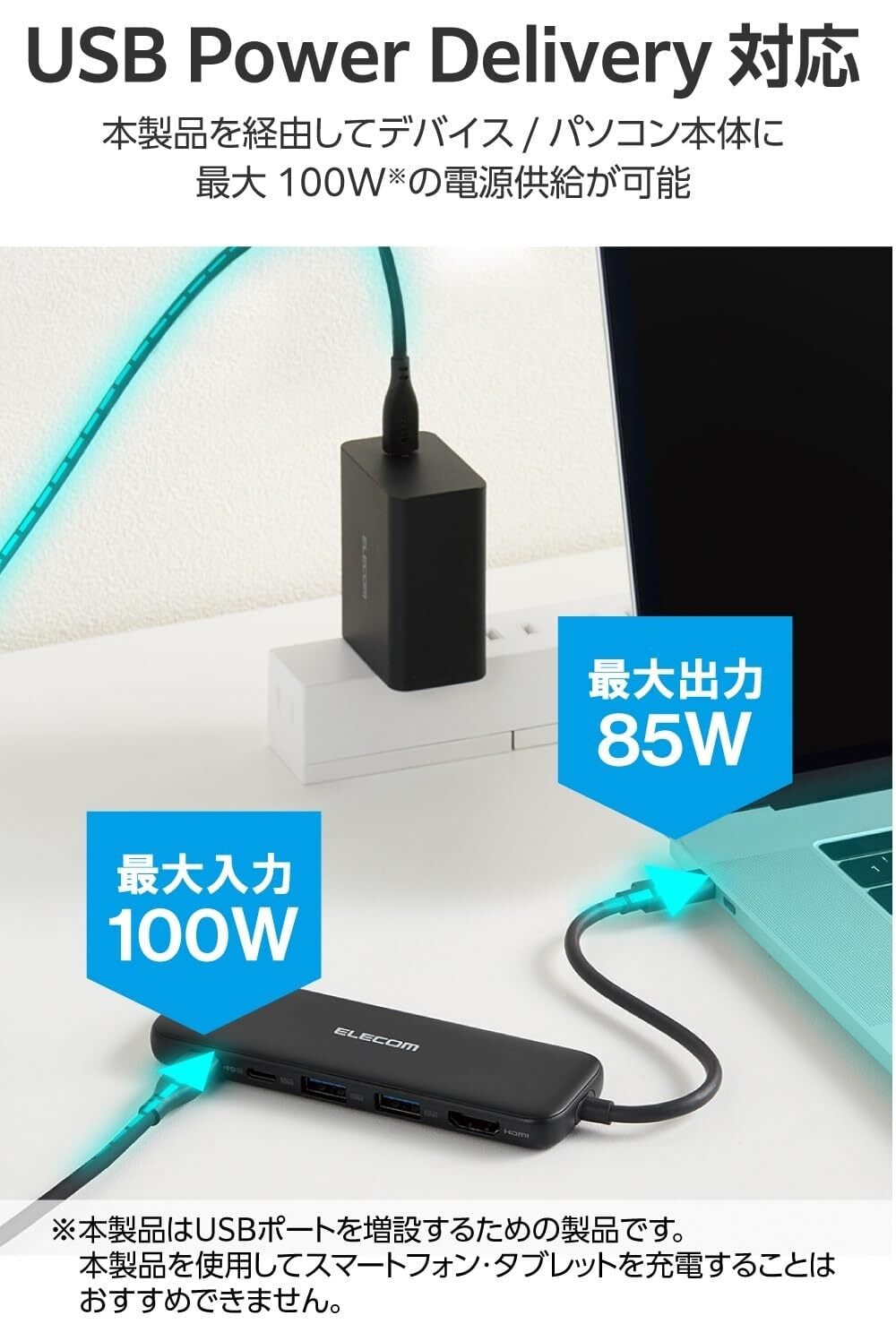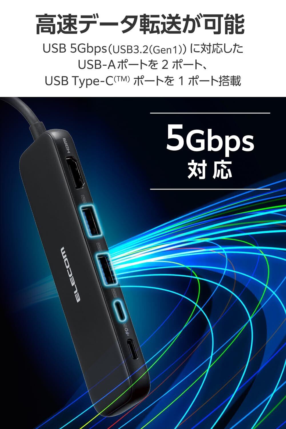エレコム USB-C ハブ ドッキングステーション 5in1 100W PD対応 HDMI 4K30Hz 高速データ転送 5Gbps ブラック DST-W01