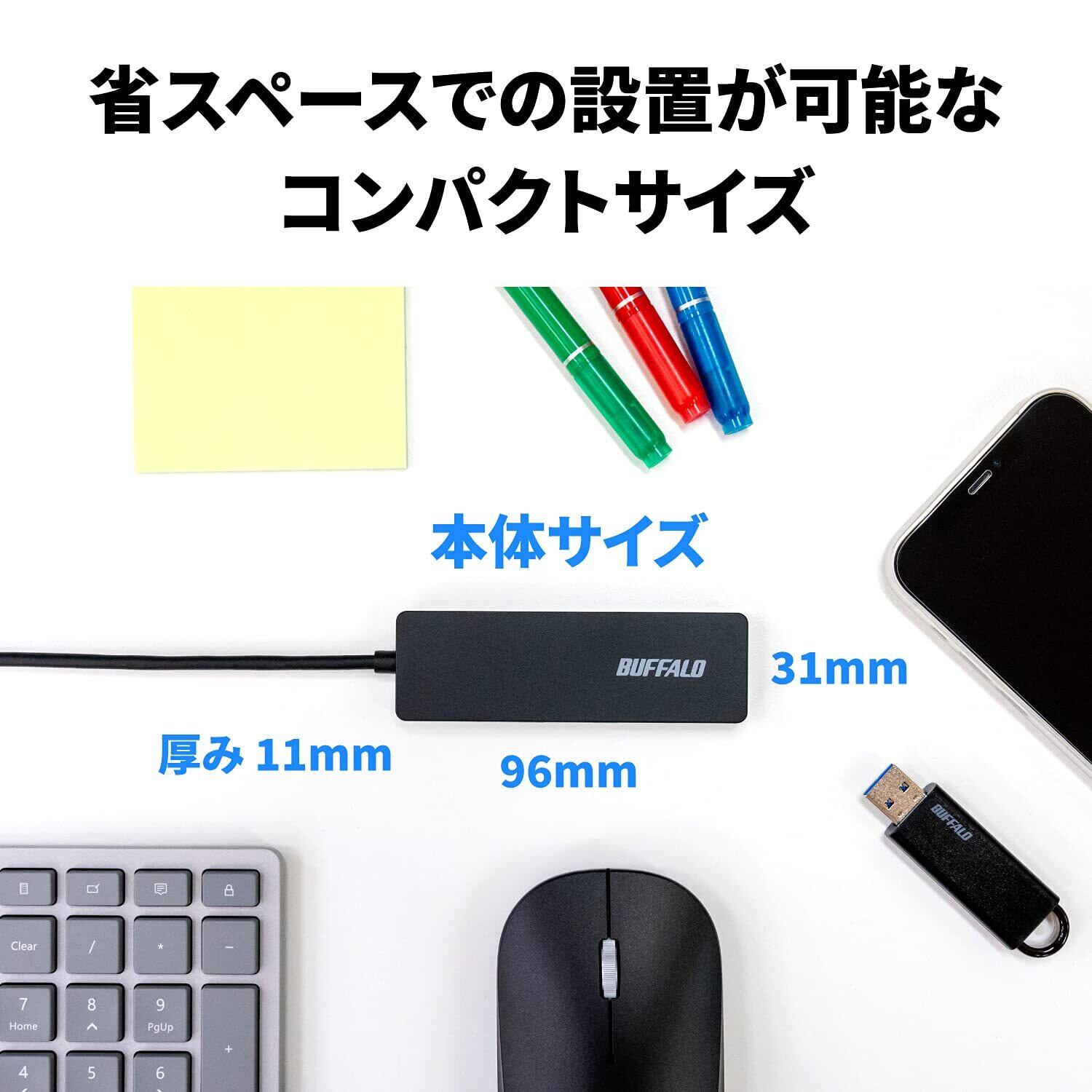 バッファロー USB ハブ USB3.0 スリム設計 4ポート 60cm バスパワー 軽量 Windows Mac PS4 PS5 Chromebook 対応 テレワーク 在宅勤務 BSH4U12560U3BK