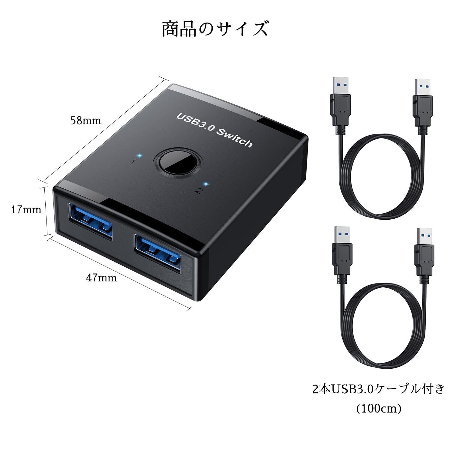 usb切替器 切り替え機 pc2台用 usb3.0 マウス キーボード 切り替え器 usb セレクター プリンタ 手動切替機 【パソコン2台:USB機器4台】USBケーブル×2(1.5m)付