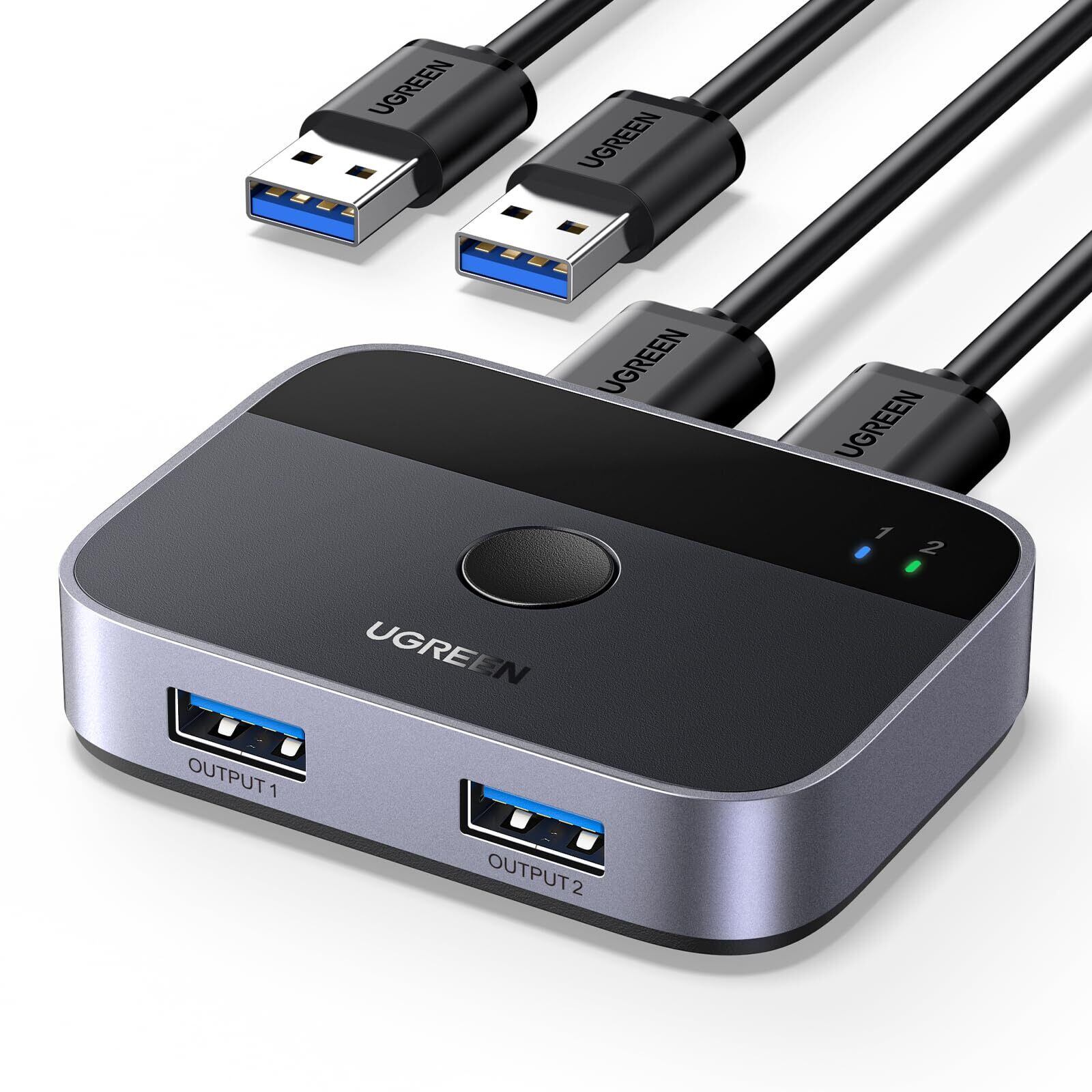 UGREEN USB3.0切替器 2入力2出力 USB切替機 2PCでキーボード/マウス/プリンタ/スキャナ/Webカメラなどを共有、2台のPC用プリンタ切替機、2*USBポート切り替え機 2本USBケーブル付き