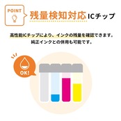 [商品説明] ・本製品は、純正品と同様に使用できる互換インクカートリッジです。メーカー純正品ではありません。・インクには、流動性が高く発色の良い「HDカラー」を採用しています。プリントヘッドにやさしく、プリンタの寿命を縮めることはありません。・互換インクとプリンタの相性問題の原因となる「ICチップ」は、業界最大手のAPEX(アペックス)社製の最新バージョンのICチップを採用し、高い安定性を実現しています。・高性能ICチップと高品質インクを採用していますので、純正インクとの併用が可能です。・残量表示にも対応しておりますので、プリンタの設定変更をすることなく、純正品と同様にお使いいただけます。・プリンター故障の原因になるカラ打ちを防止するために、印刷枚数に必要なインクよりも多めにインクが填充されています。そのため、使用後にカートリッジ内にインクが残っている場合がありますが製品不良ではありません。