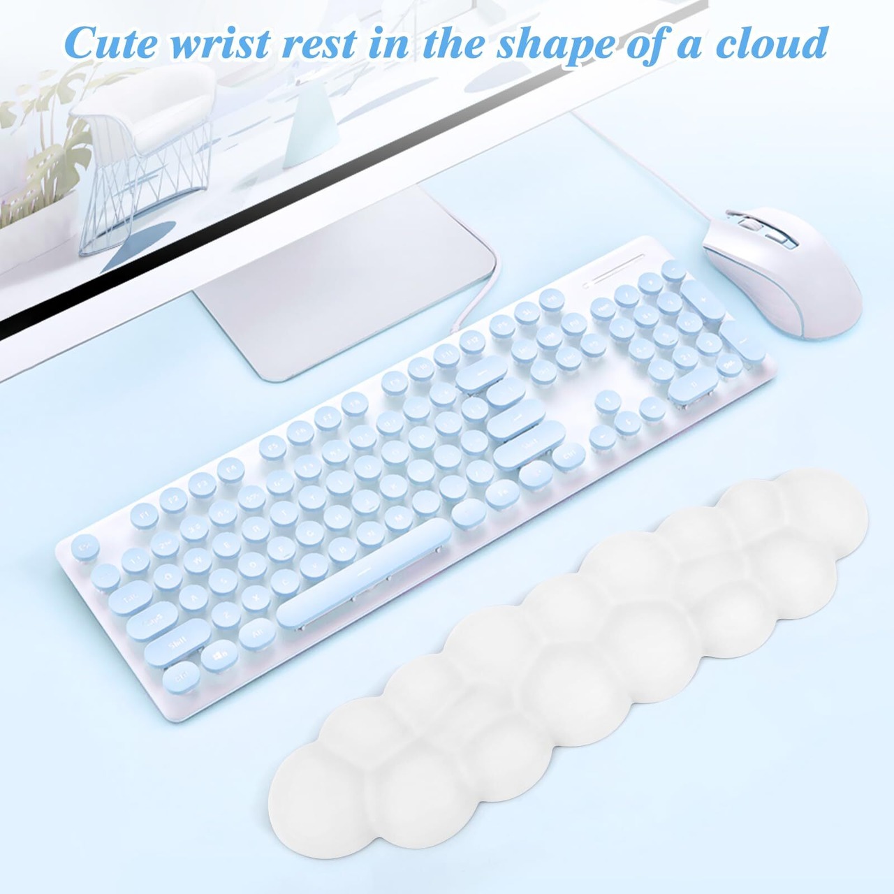 Elzoキーボードリストレスト キーボード クッション雲状手首 PU材質 疲労軽減 低反発クッション 人間工学デザイン アームレスト 滑り止めベース メモリーフォーム パソコンクッション ストレス解放 マッサージホール付き手首置き 雲 柔らかい素材 通気性 肌に刺激なし pc キーボード 手首パッド 手首クッション パームレスト オフィス/ゲームL38.5*W9.5*H2.3cm(ホワイト) | impsmile