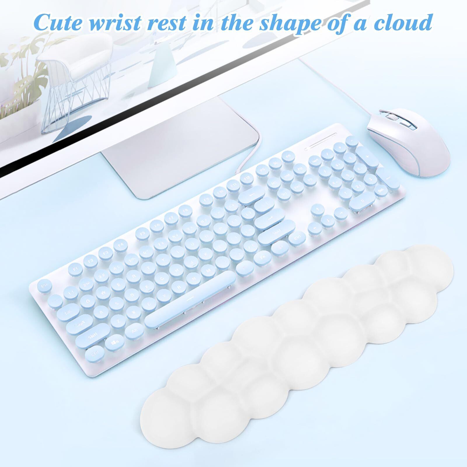Elzoキーボードリストレスト キーボード クッション雲状手首 PU材質 疲労軽減 低反発クッション 人間工学デザイン アームレスト 滑り止めベース メモリーフォーム パソコンクッション ストレス解放 マッサージホール付き手首置き 雲 柔らかい素材 通気性 肌に刺激なし pc キーボード 手首パッド 手首クッション パームレスト オフィス/ゲームL38.5*W9.5*H2.3cm(ホワイト)