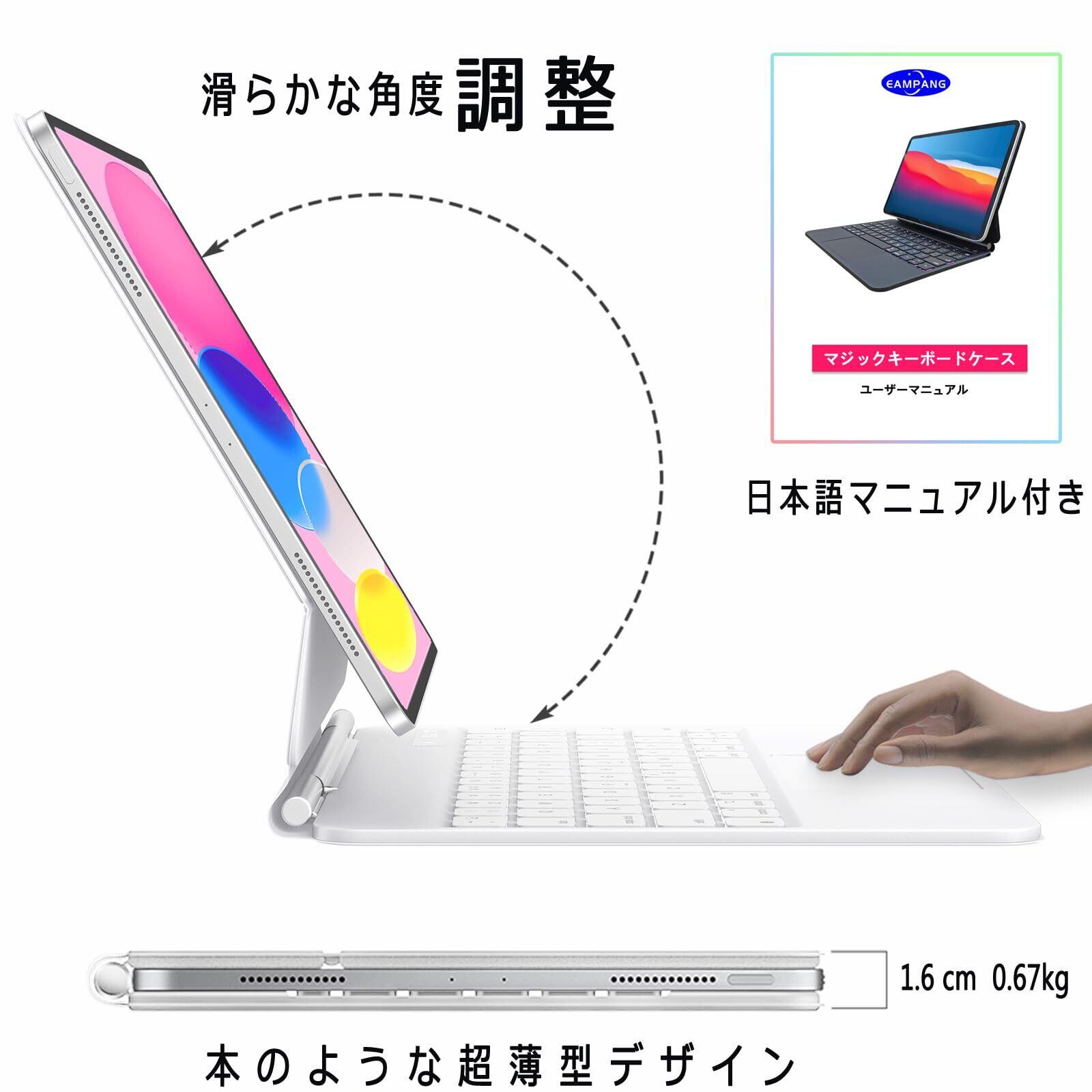 EAMPANG 日本語配列マジックキーボード iPad (A16) 第11世代 11インチ 2025/第10世代 10.9インチ 2022 (A2696 A2757 A2777 A3354 A3355 A3356) キーボードケース, Magic Smart Keyboard タブレットキーボード付きケースカバー【日本語取扱説明書付き】(白)