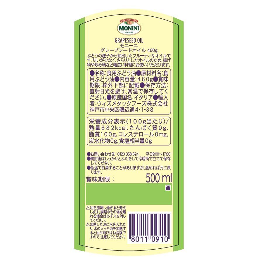 モニーニ グレープシードオイル 460g