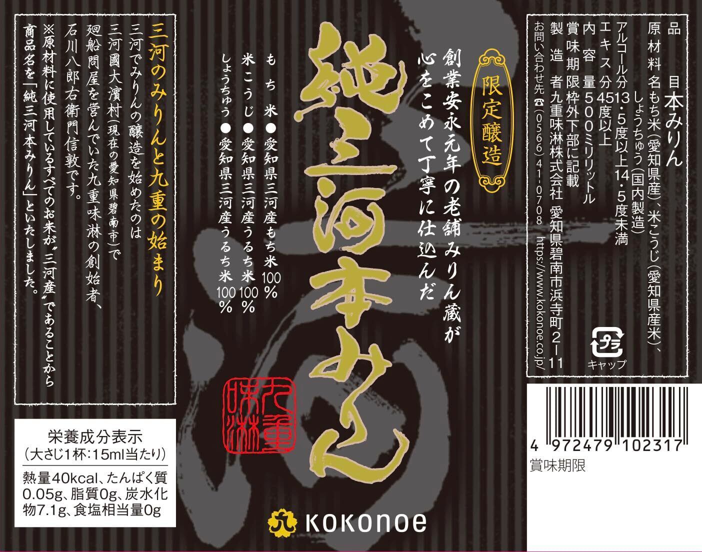 九重味淋 純三河本みりん 壜 [ 500ml ]