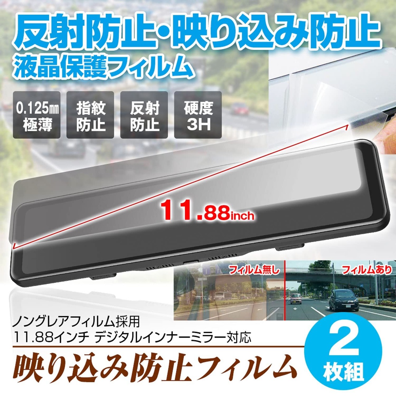 映り込み防止フィルム 11.88インチ デジタルインナーミラー専用 反射防止 ZDR038 DVR-EM4800 対応 2枚セット 指紋防止 アンチグレア 超薄 K-FILM01 | impsmile