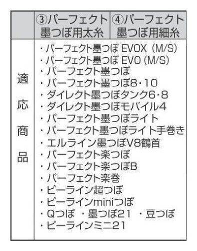 適応商品:パーフェクト墨つぼライト手巻き、パーフェクト楽つぼ、パーフェクト楽つぼB