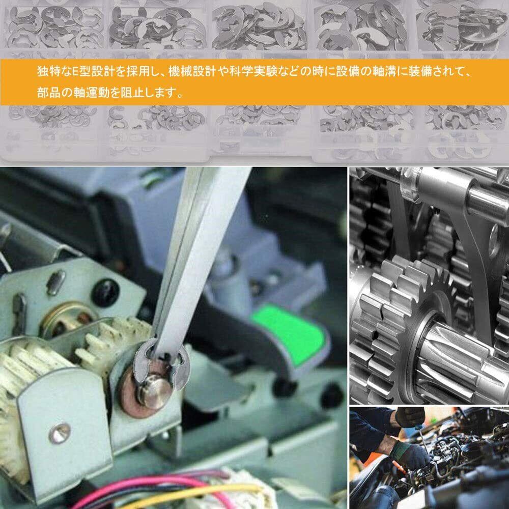 【特徴】独特なE型設計を採用し、機械設計や科学実験などの時に設備の軸溝に装備されて、部品の軸運動を阻止します。