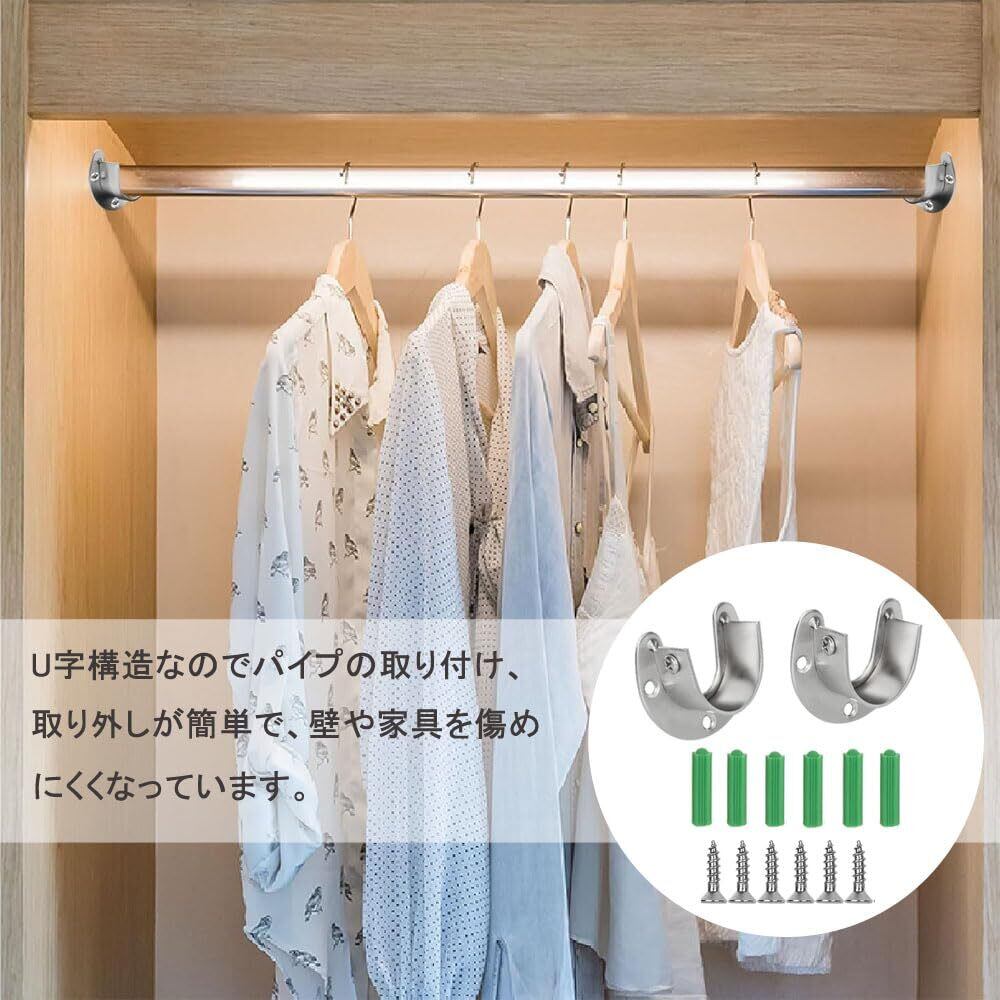 クローゼットロッドサポート ド径25MM 物干し竿 ホルダー U字型 フランジロッド ステンレス鋼 シャワーロッド ハンガーポール ねじつき インストールが簡単( 2個セット)