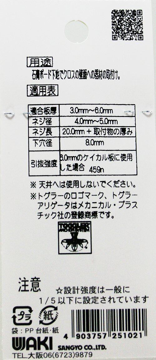 和気産業(Waki Sangyo) トグラー TA ヒートン 白 石膏 アンカー GL工法 WF-102 4個入