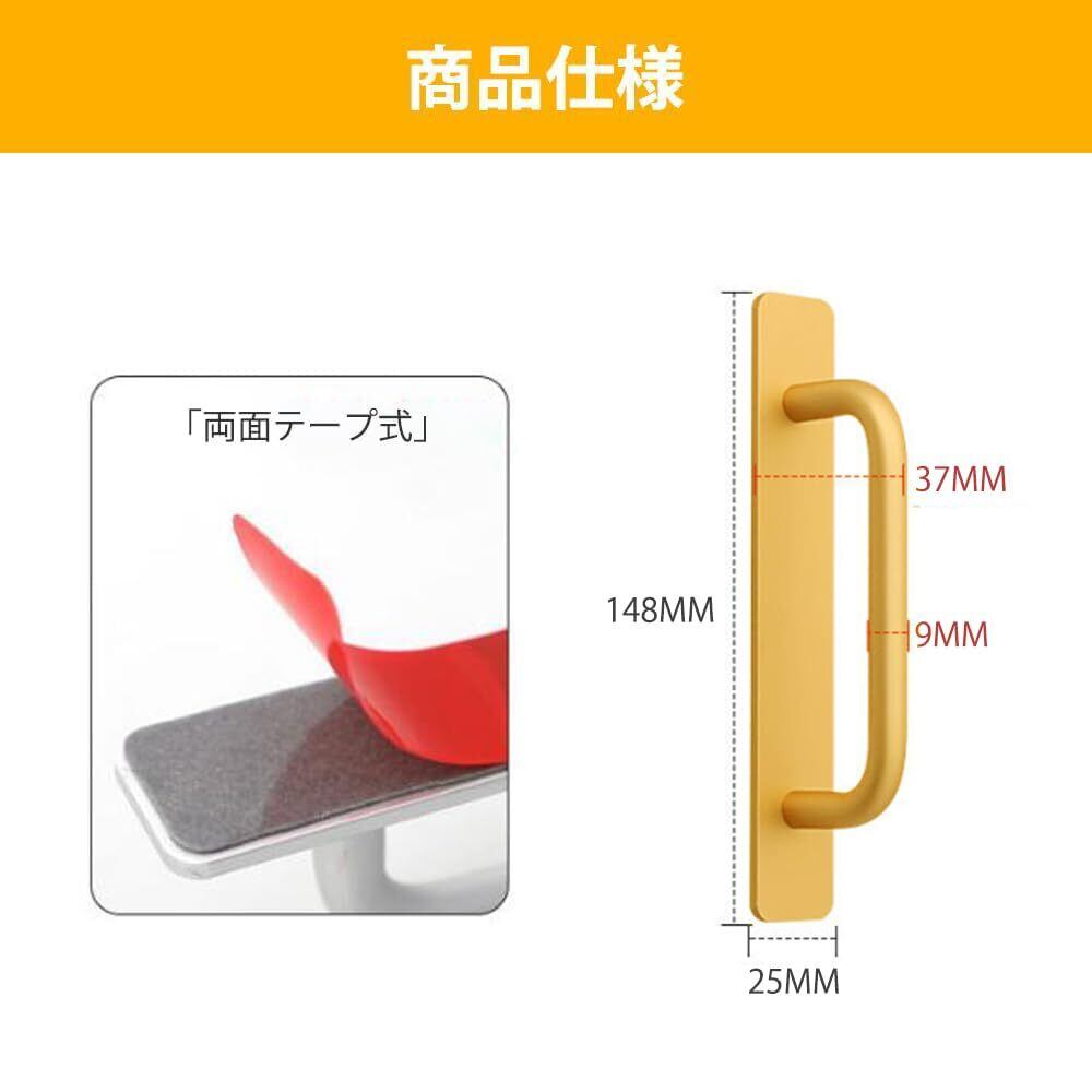 GOODCHI ドア取手 引き出し取手 2個入 アルミニウム合金 戸棚引きハンドル 自己粘着式 両面テープ式 網戸/窓/戸棚/引き出し/ドア用 取り付けが簡単 (ゴールド)