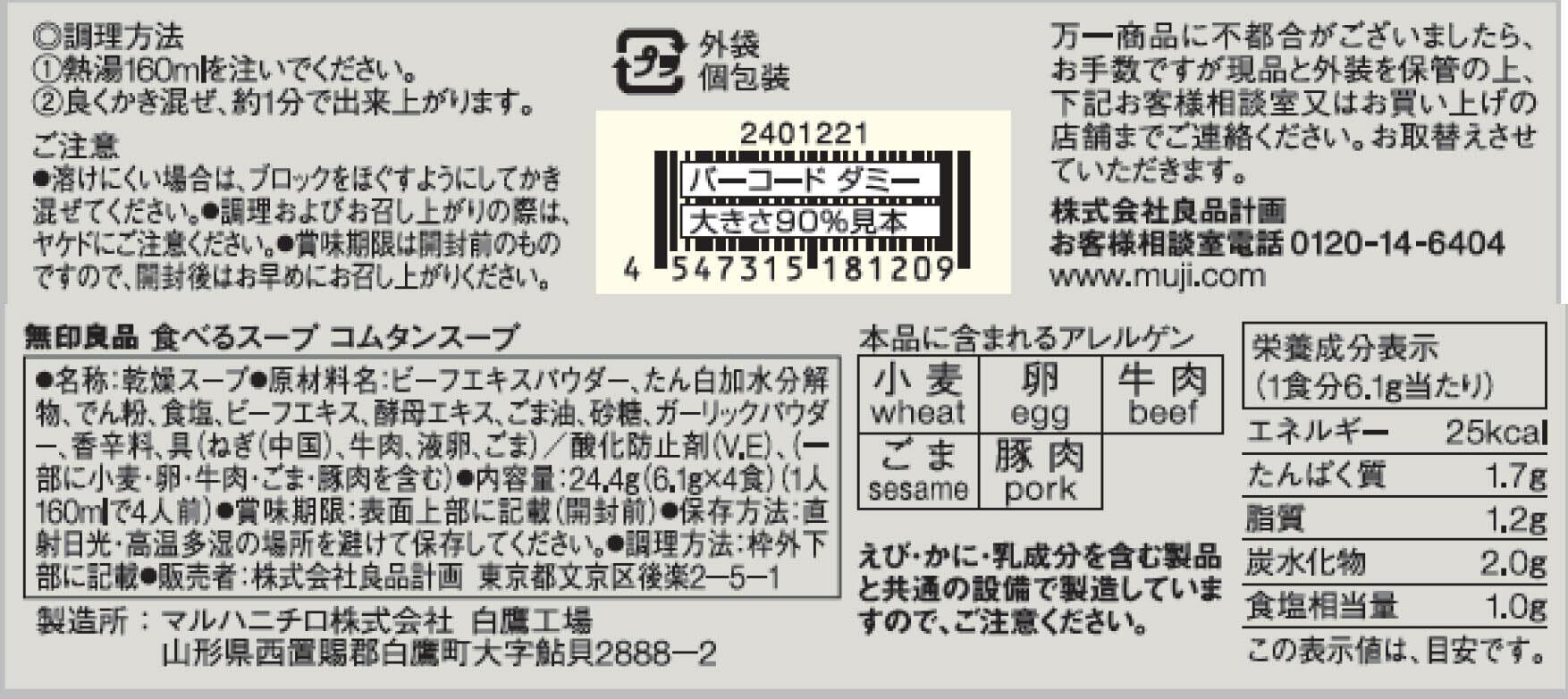 無印良品 食べるスープ コムタンスープ 4食 15181209