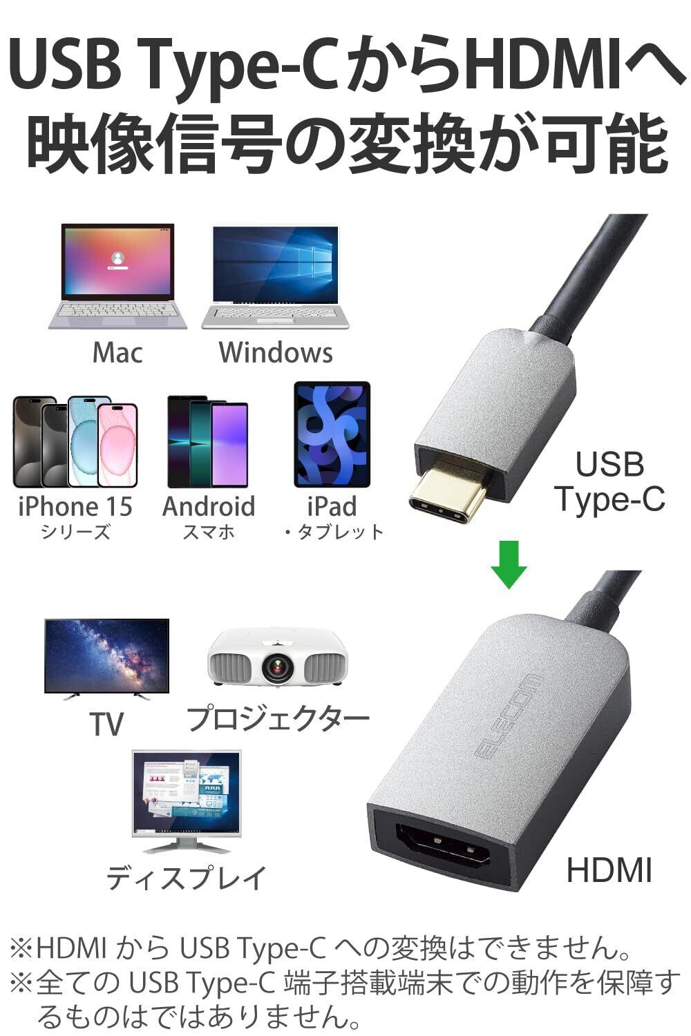 エレコム USB-C HDMI 変換アダプター 4K60Hz (USB C to HDMI 変換アダプタ) 0.15m シルバー 【iPhone 16/16 Pro/16 Pro Max/16 Plus 対応検証済】 ECAD-CHDMIQGM2