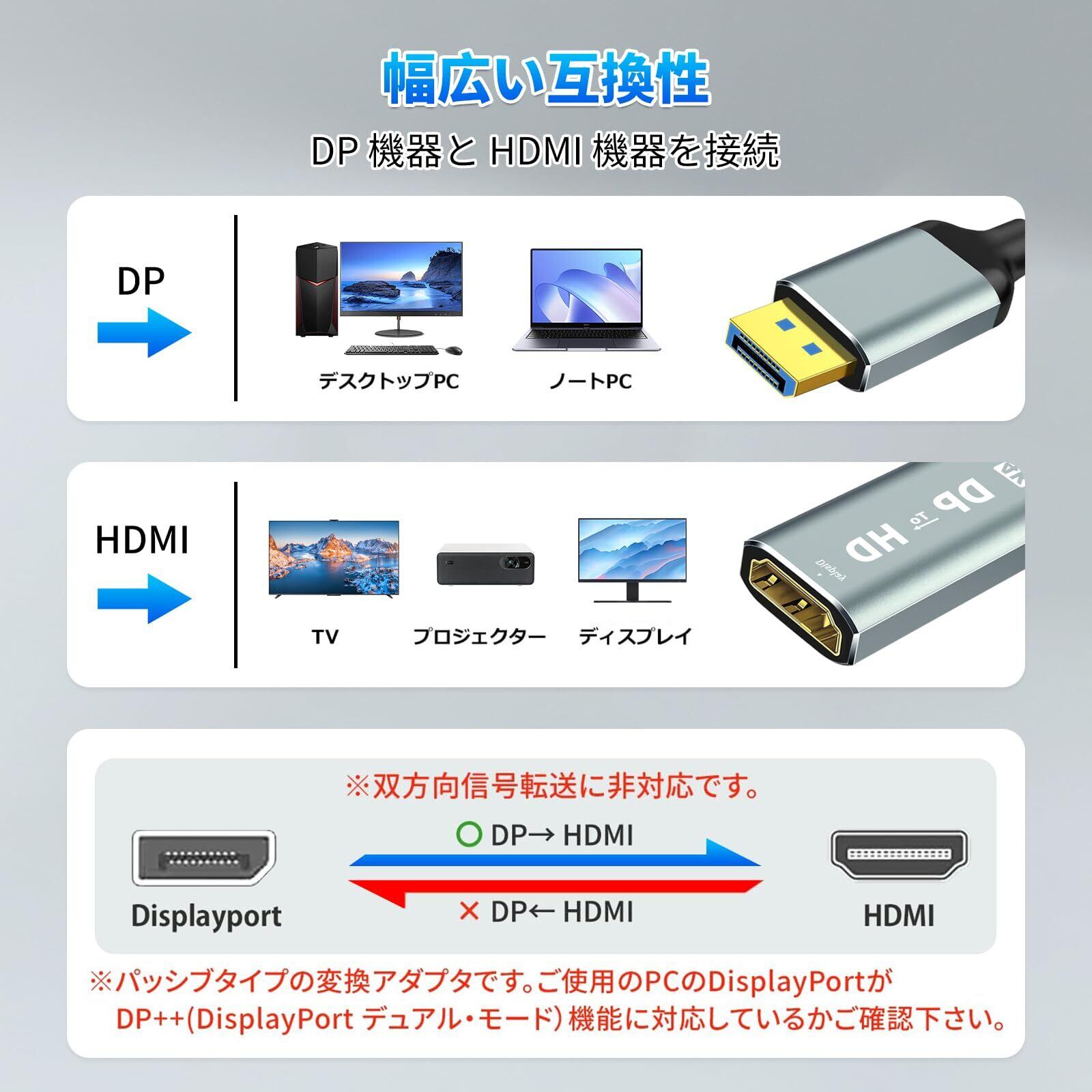 DisplayPort HDMI 変換アダプター DP to HDMI 変換ケーブル|4K 60Hz 音声映像同期|HDTV/モニター/プロジェクター/PC 用|※HDmi から DisplayPort への変換には対応していません