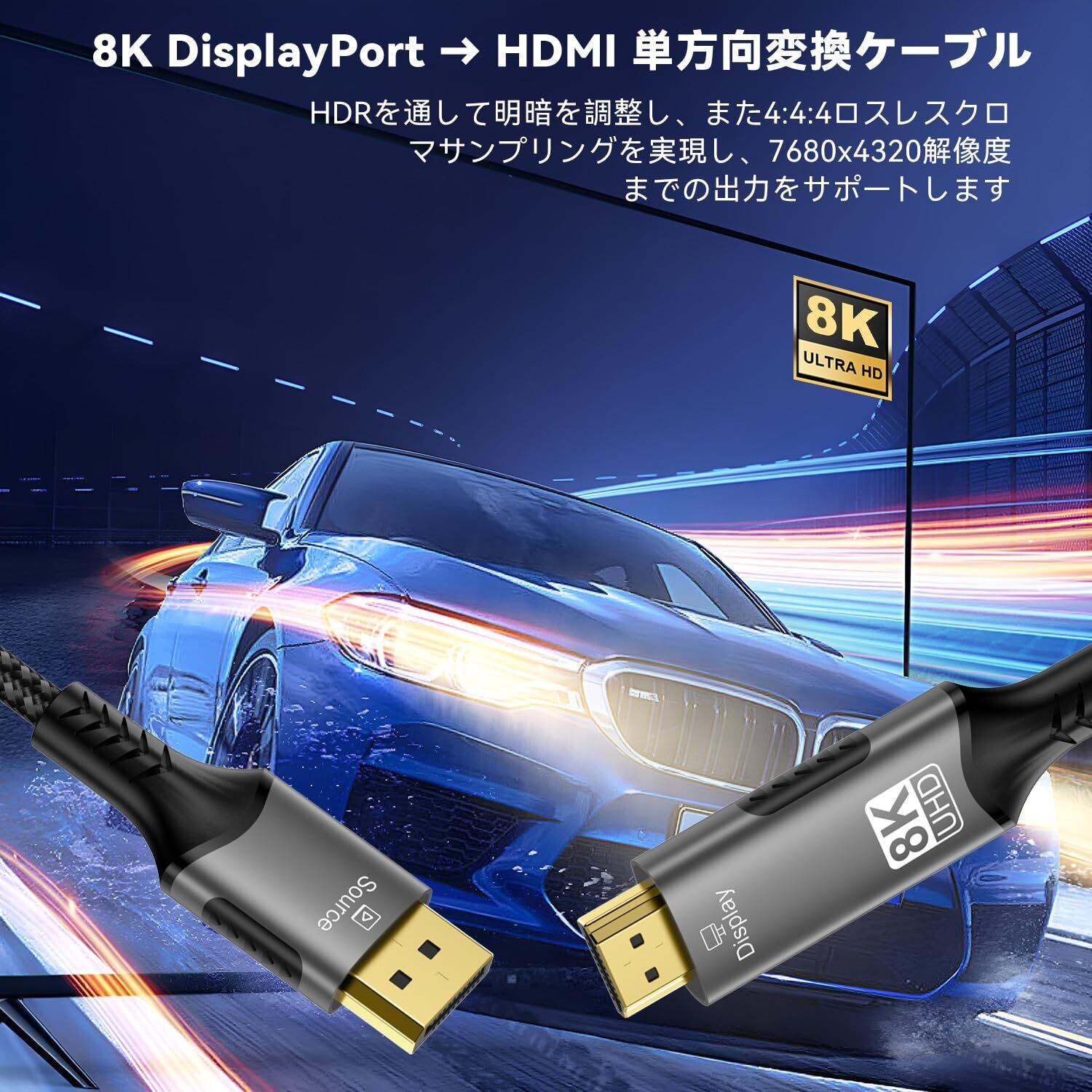 FDBRO 8K DisplayPort HDMI 変換ケーブル アクティブ 8K@60Hz 4K@120Hz 32.4Gbps 単方向伝送 オス-オス DP 1.4からHDMI 2.1 ディスプレイポート - HDMI ケーブル HDR/HDCP 2.2/DSC 1.2をサポート HDTV、ゲームモニター、PC、グラフィックスカードなどに対応 (グレー&ブラック, 2m-8K)