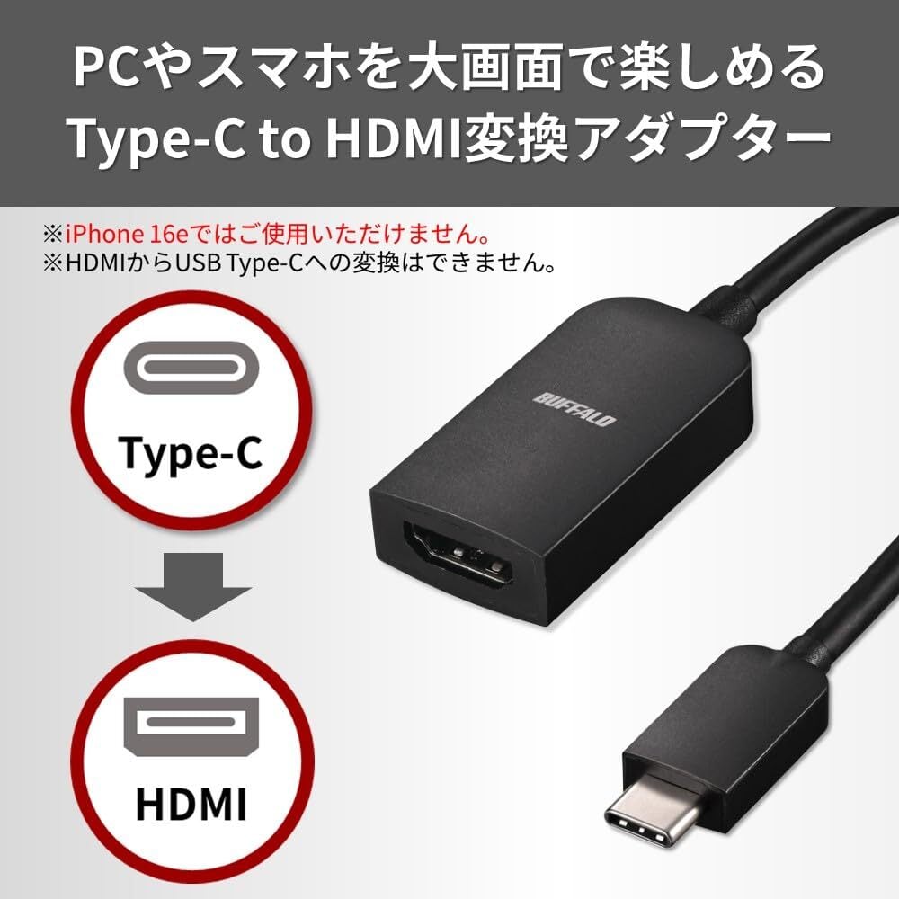 バッファロー USB Type-C HDMI 変換 アダプター 15cm 4K(60Hz)対応 マルチディスプレイ ミラーリング BSCHDBK/N